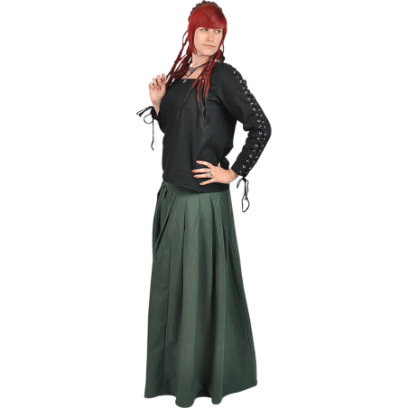 Długa do kostek spódnica „Anna” posiada szeroki, wygodny pas. Dzięki wiązaniu z tyłu można łatwo dopasować rozmiar i krój. Wytrzymały canvas sprawia, że spódnica doskonale nadaje się na LARP-y i jarmarki średniowieczne.