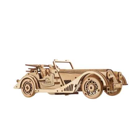 Samochód sportowy jest przystojnym dodatkiem do naszego rosnącego katalogu samochodów wyścigowych, motocykli, ciężarówek i innych wybitnych modeli motoryzacyjnych DIY i świetnym prezentem dla każdego miłośnika samochodów lub entuzjasty puzzli 3D. Możesz pozostawić go w jego atrakcyjnym stanie z naturalnego drewna lub spełnić swoje marzenia na małą skalę, malując lub bejcując go na wybrany przez siebie kolor. Szczęśliwej jazdy!