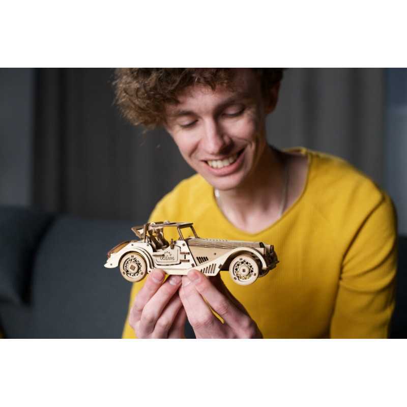 Ten wspaniały model w skali 1:24 jest drugim modelem z serii Dual Motors firmy UGEARS, po modelu Hot Rod, i z pewnością sprawi, że serca wszystkich miłośników samochodów zaczną bić szybciej, jak po dobrym podwójnym szocie espresso.