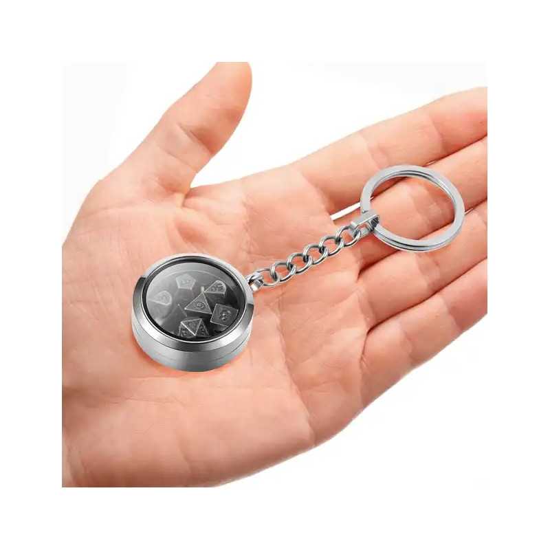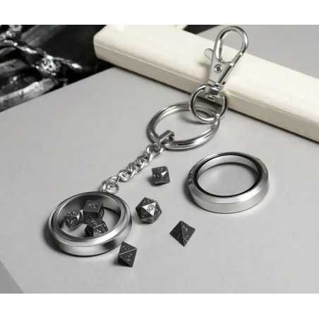 Metalowy breloczek na malutki zestaw 7 kości RPG to idealny dodatek dla miłośników gier fabularnych, którzy chcą mieć przy sobie zestaw kości na każdą okazję.