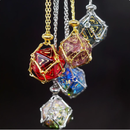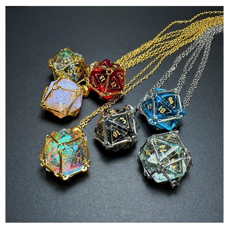 Naszyjnik na K20 to wyjątkowy dodatek, który łączy funkcjonalność z elegancją, stając się idealnym wyborem dla każdego fana gier fabularnych. Zawieszona na subtelnym łańcuszku, metalowa klatka skrywa w sobie miejsce na kość k20. Jego solidna konstrukcja i unikalny design sprawiają, że naszyjnik jest nie tylko praktycznym, ale i stylowym akcesorium, które doskonale oddaje pasję do gier fabularnych. To elegancki sposób na zawsze mieć przy sobie kostkę!