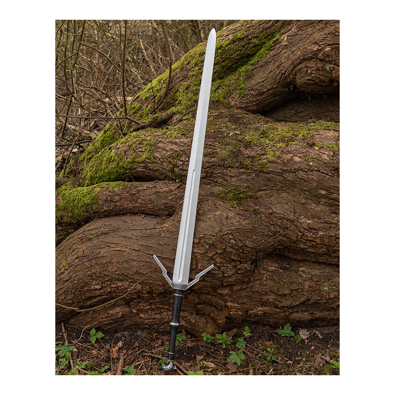 Stworzony przez kanadyjską manufakturę Calimacil we współpracy z CD PROJEKT RED, oto Srebrny Miecz Geralta z uniwersum gry Wiedźmin 3: Dziki Gon – wielokrotnie nagradzanej gry fabularnej akcji. W świecie Wiedźmina srebrne miecze są tworzone specjalnie do zabijania potworów zrodzonych z magii, których nie da się zranić zwykłą stalą. Ta piankowa replika została zaprojektowana i wykonana na podstawie oryginalnych zasobów z gry, jest wystarczająco miękka, by zapewnić bezpieczne użycie w inscenizowanych walkach, ale jednocześnie na tyle solidna, by sprawdzić się jako rekwizyt i element cosplayu.