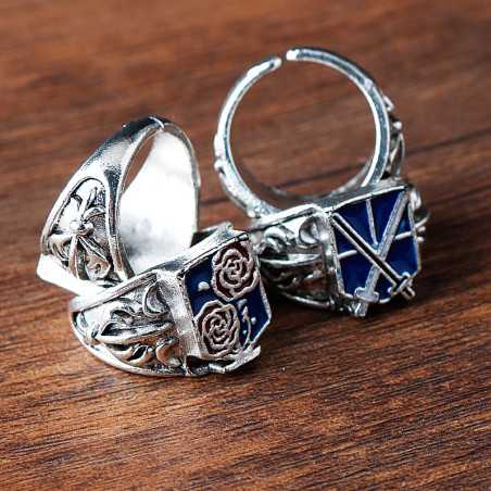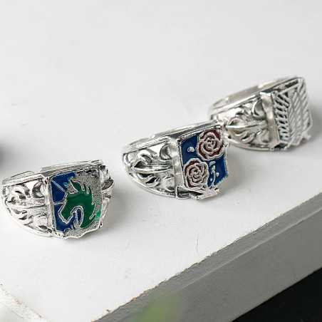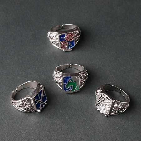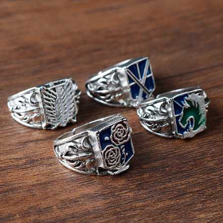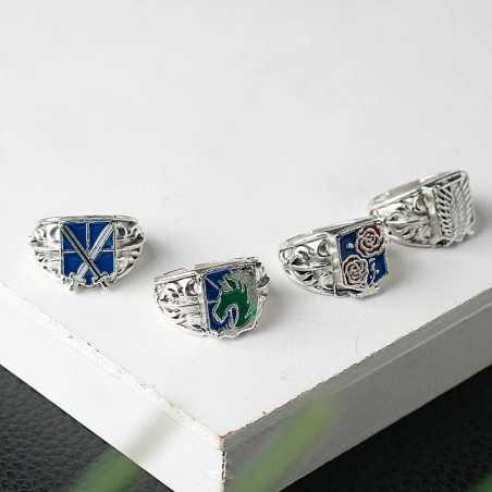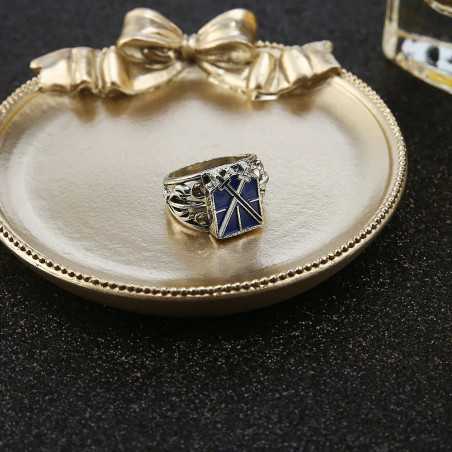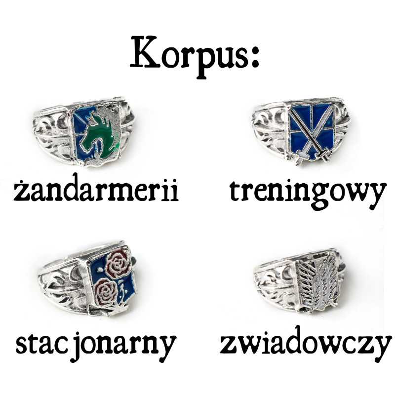 Ten metalowy pierścień to idealny wybór dla fanów anime! Wykonany z wysokiej jakości metalu, ozdobiony wizerunkiem jednego z korpusów wojskowych, ten pierścień jest zarówno elegancki, jak i wyraźnie związany z tematyką anime i mangi.