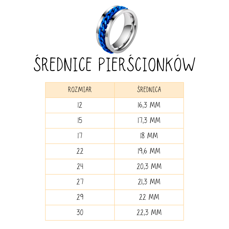 Stylowy i funkcjonalny pierścionek wykonany z trwałego metalu. Posiada ruchomy, obrotowy łańcuch, który działa antystresowo – idealny do dyskretnego zajęcia dłoni i redukcji napięcia. Minimalistyczny design sprawia, że pasuje do każdego stylu, zarówno na co dzień, jak i na specjalne okazje.