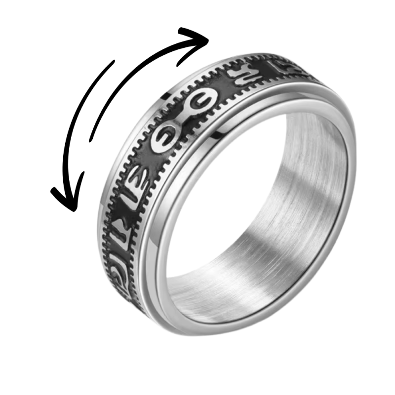 Stylowy i funkcjonalny pierścionek wykonany z trwałego metalu. Posiada ruchomą, obrotową część, która działa antystresowo – idealny do dyskretnego zajęcia dłoni i redukcji napięcia. Minimalistyczny design sprawia, że pasuje do każdego stylu, zarówno na co dzień, jak i na specjalne okazje.