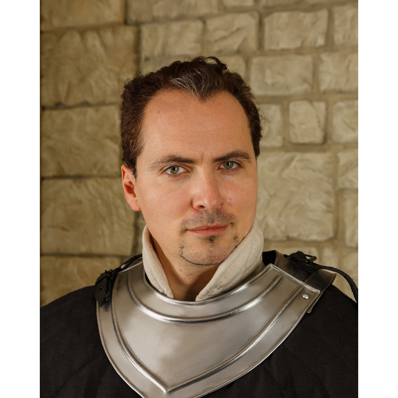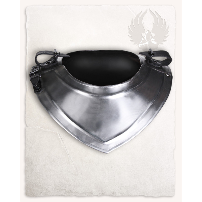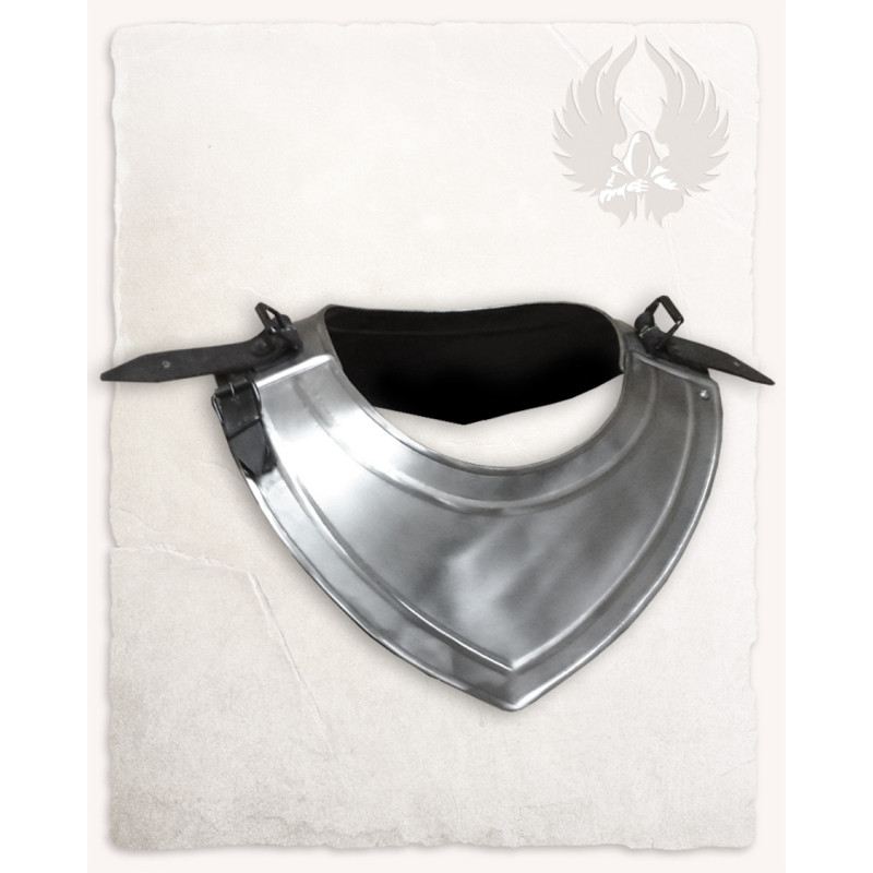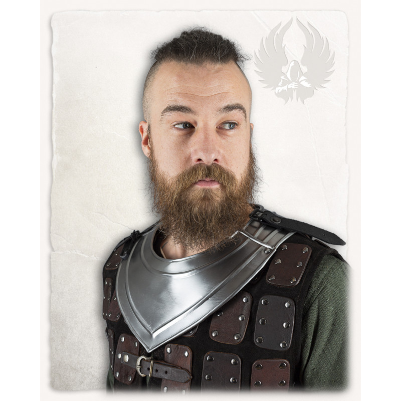 Obojczyk "Adam" zachwyca prostą elegancją. Dwa tłoczone, ozdobne przetłoczenia pełnią nie tylko funkcję dekoracyjną, ale także zwiększają stabilność całości. Wszystkie krawędzie, jak we wszystkich elementach pancerza Mytholon, są oczywiście zawinięte dla dodatkowego komfortu i bezpieczeństwa.
