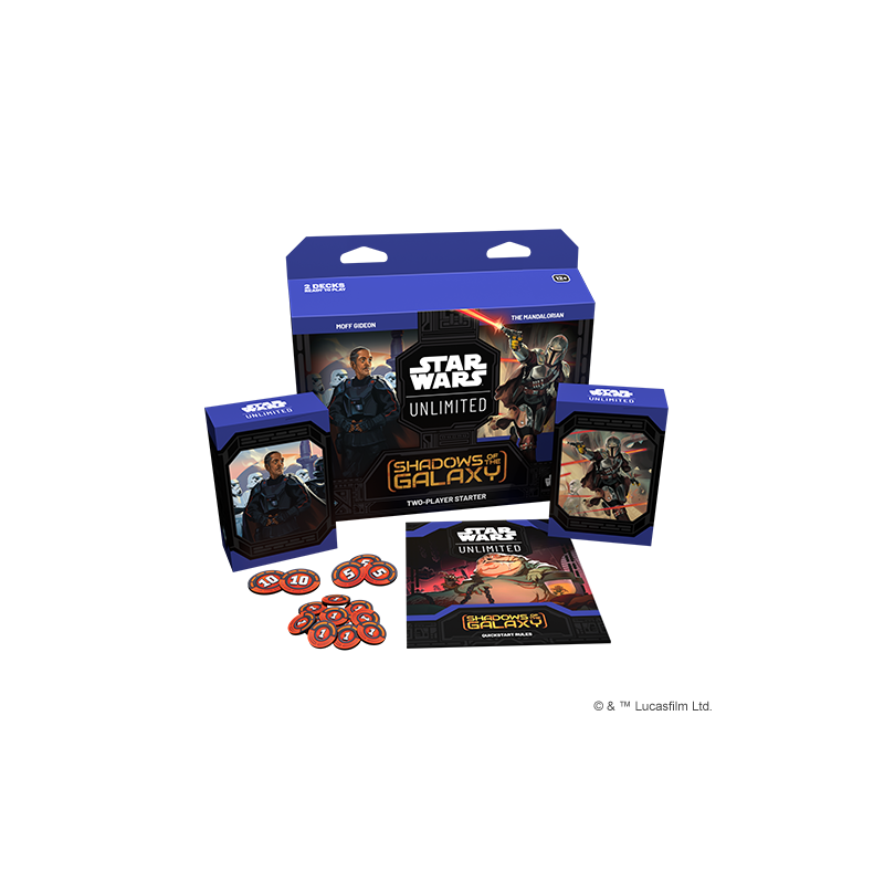 Star Wars: Unlimited to strategiczna gra karciana w typie TCG, w której gracze wcielają się w role liderów - kultowych postaci ze świata Gwiezdnych Wojen - którzy gromadzą swoje siły, by stoczyć walkę o bazę przeciwnika. Potęgę graczy reprezentuje talia 50 kart zbudowana z jednostek, zdarzeń i ulepszeń.   Star Wars: Unlimited - Shadows of the Galaxy - Two-Player Starter to dwie gotowe do gry talie, szybkie wprowadzenie w zasady i masa akcesoriów.