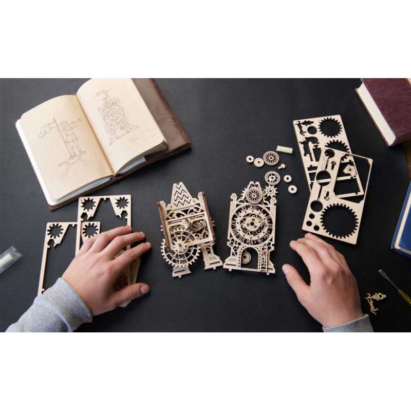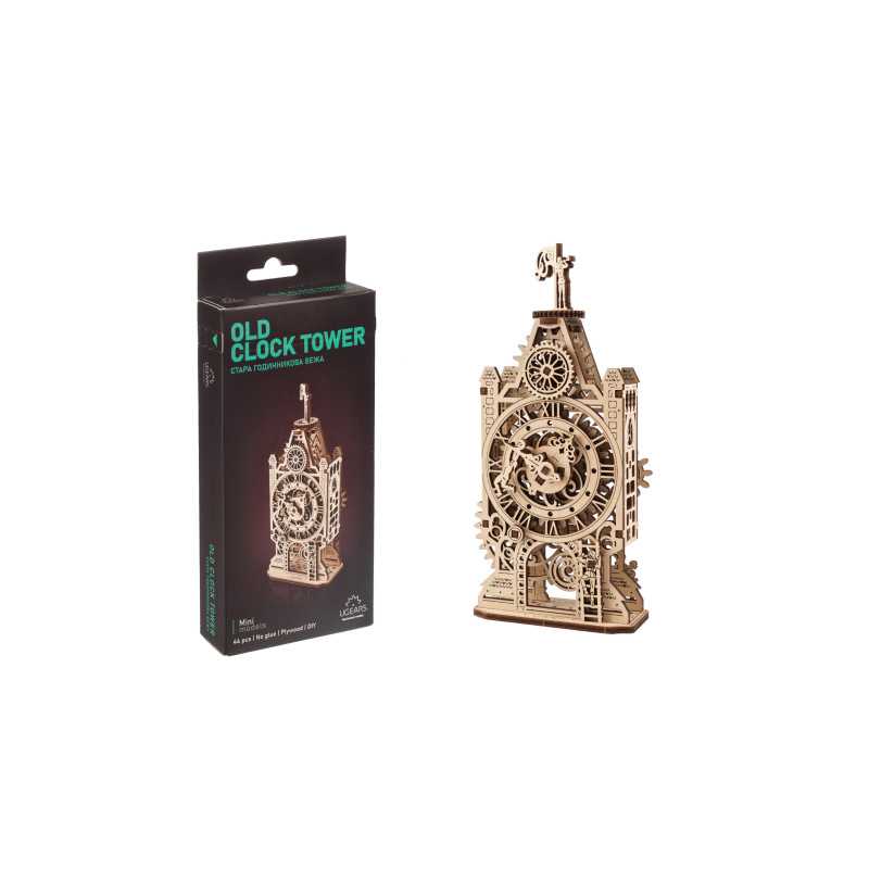 Stara Wieża Zegarowa powiększa naszą kolekcję zabawnych mini modeli, oryginalnych modeli 3D oraz modeli mechanicznych do samodzielnego złożenia, zaprojektowanych w steampunkowej stylistyce. Ten mini model mieści się w dłoni i jest łatwy w budowie. Składa się tylko z 44 części, w godzinę można się z nim uporać. Dzięki temu jest odpowiedni dla osób w każdym wieku i na każdym poziomie doświadczenia. Do złożenia tego modelu nie potrzeba kleju ani specjalnych narzędzi – wystarczy połączyć części na zatrzaski (po lekkim przeszlifowaniu i nasmarowaniu ruchomych kół zębatych dołączonym woskiem), postępując zgodnie ze szczegółowymi, ilustrowanymi instrukcjami. Wszystko, co jest potrzebne do montażu, znajduje się w pudełku. Prosta konstrukcja, ale rezultaty są niesamowite i sprawią, że będziesz chciał zbudować więcej bardziej wymagających drewnianych modeli UGEARS.