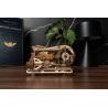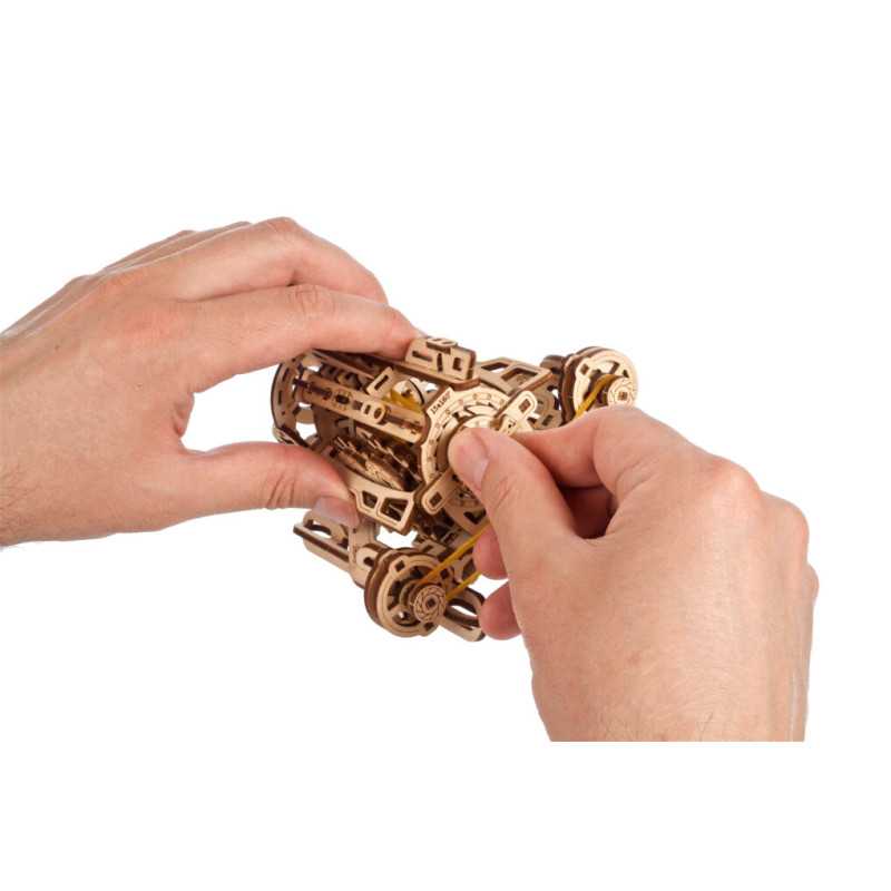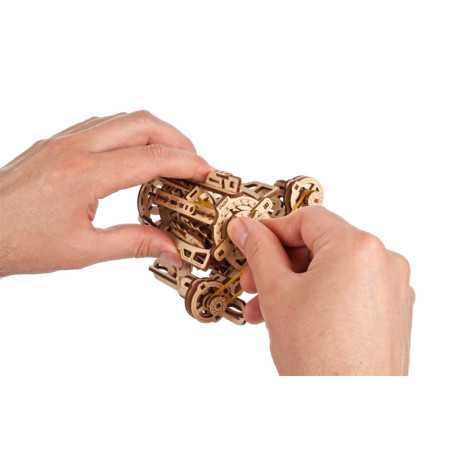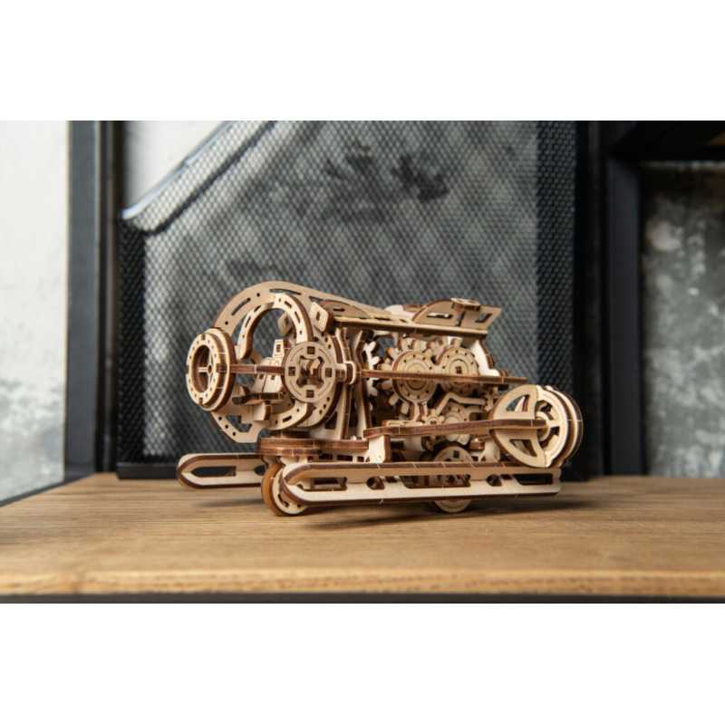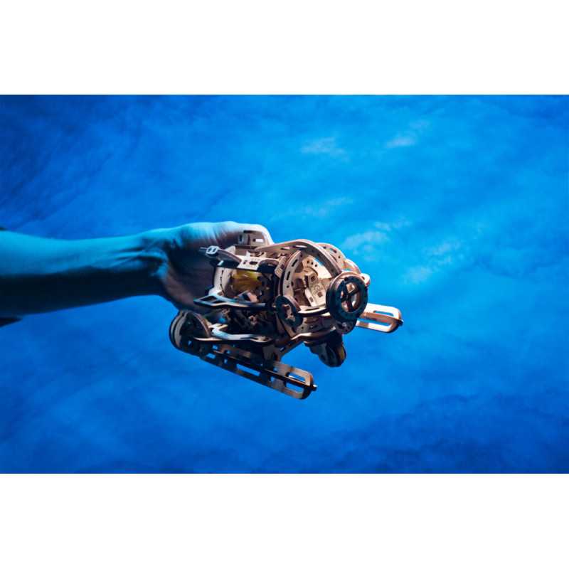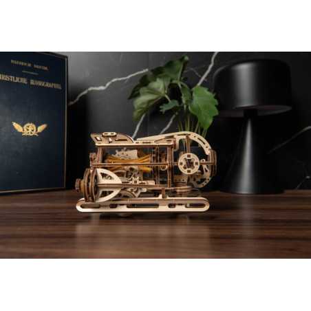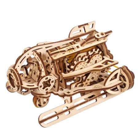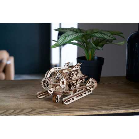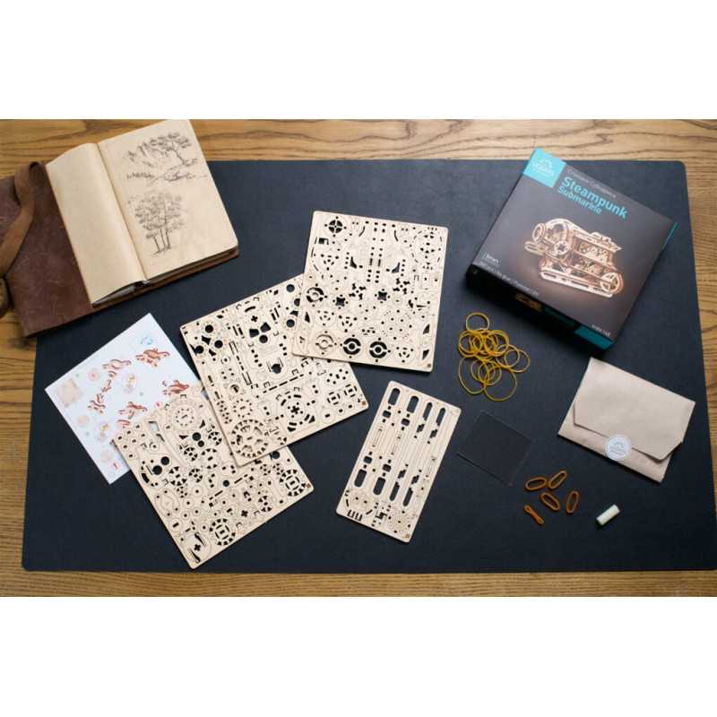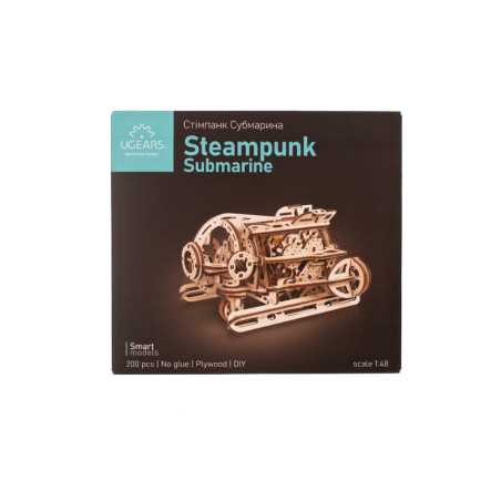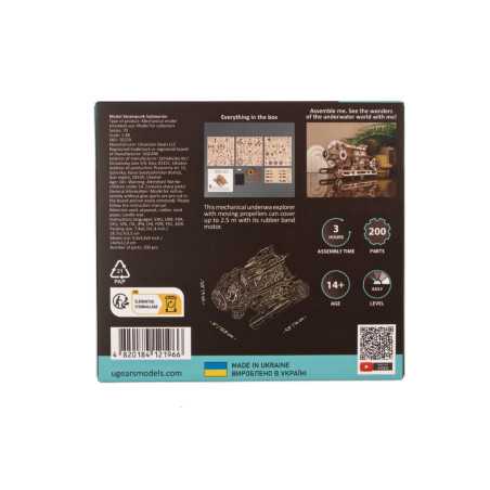 Drewniana układanka 3D Steampunkowa Łódź Podwodna wchodzi w skład nowej linii od Ugears – produktów SMART. To kolekcja obejmująca drewniane puzzle pośredniej kategorii modeli mechanicznych, gdzieś pomiędzy modelami Mini i Standard pod względem trudności. Podobnie jak w przypadku innych modeli Ugears SMART, również drewniana łódź podwodna została wykonana z przyciętego laserowo drewna kompozytowego dla maksymalnej satysfakcji z montażu. Składa się z 200 części, dzięki czemu zarówno początkujący, jak i średnio zaawansowani modelarze mogą złożyć ją w kilka godzin. Jak zawsze w przypadku naszych układanek do ich montażu nie będziesz potrzebował ani kleju, ani żadnych innych dodatkowych narzędzi. W celu prawidłowego połączenia wszystkich elementów wystarczy bogato ilustrowana instrukcja wydana w 11 wersjach językowych, wchodząca oczywiście w skład zestawu. Model można pozostawić w naturalnym drewnie, pomalować według uznania lub zabejcować.