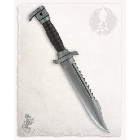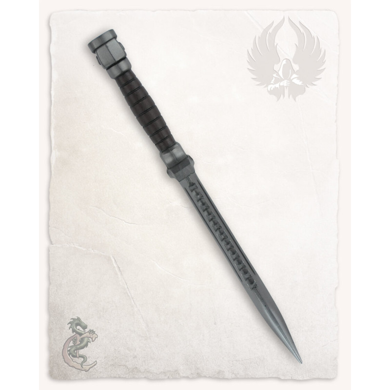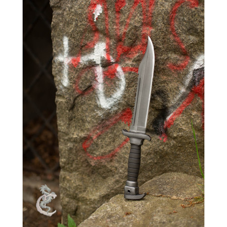 Ten nowy, postapokaliptyczny sztylet ma surowy wygląd noża przetrwania: ostra krawędź i grzebieniowe ząbkowanie. Stalowoszare ostrze osadzone jest na brązowej rękojeści o fakturze skóry, zapewniając doskonały chwyt. Cała broń wykonana jest z najbezpieczniejszej pianki Calimacil, która zapewnia trwałość niezbędną do życia na pustkowiu, a jednocześnie bezpieczeństwo użytkowania w każdym środowisku LARP.