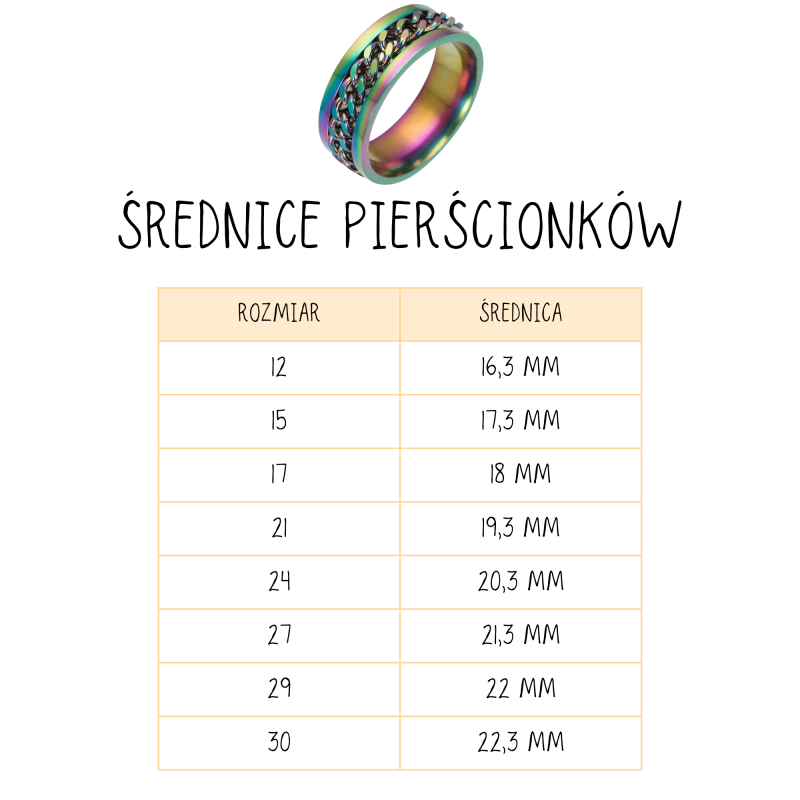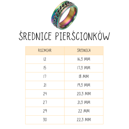 Tęczowy Pierścionek Pierścień Antystresowy Obrotowy Łańcuch Rozmiar 29