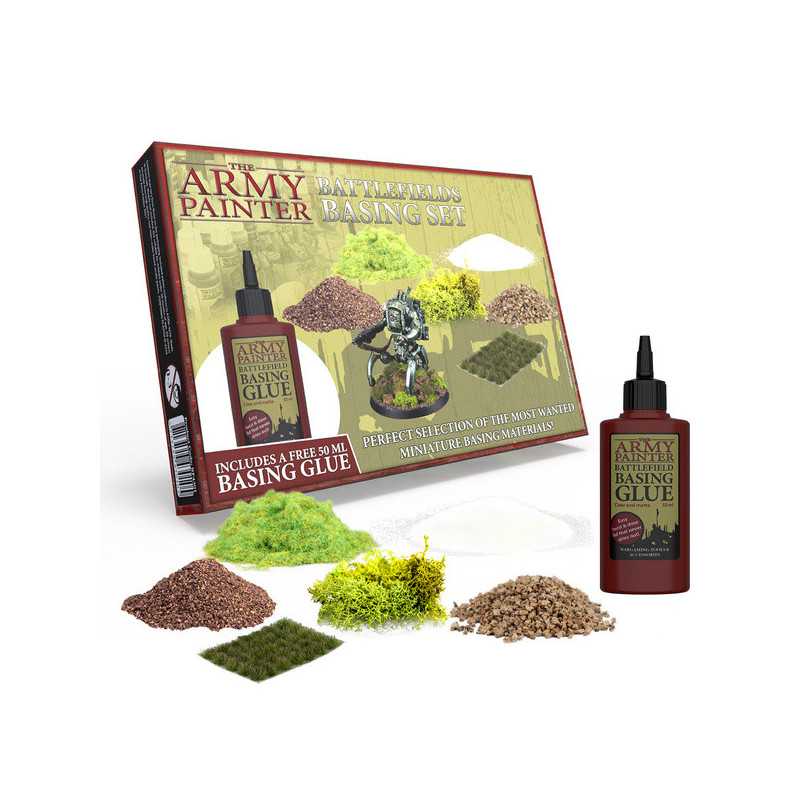 Ten niesamowity zestaw został zaprojektowany, aby dać modelarzowi jedno pudełko pasujące do wszystkich miniaturowych podstawek. Zawiera wszystkie podstawowe materiały bazowe potrzebne do wykonania dowolnej podstawki dla twoich miniatur. Zawiera również 50 ml kleju do posypek Battlefields, a także przewodnik po malowaniu techniką malowania Army Painter.