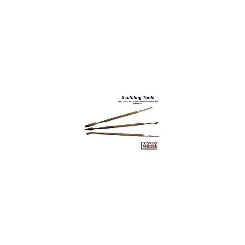 Zestaw narzędzi modelarskich zawiera trzy narzędzia specjalne zaprojektowane do pracy z green stuffem i małymi detalami jak włosy i kolczugi.