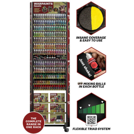Warpaints Fanatic to nowa seria farb firmy The Army Painter. Cechuje się wysokim napigmentowaniem, dobrym kryciem oraz szeroką gamą kolorów. Sześciokolorowy system triad kolorów pomaga dobrać wymagany odcień farby. Każda z farb została wyposażona w stalowe kulki ułatwiające mieszanie przed użyciem oraz znany z farb The Army Painter kroplowy system dozowania.