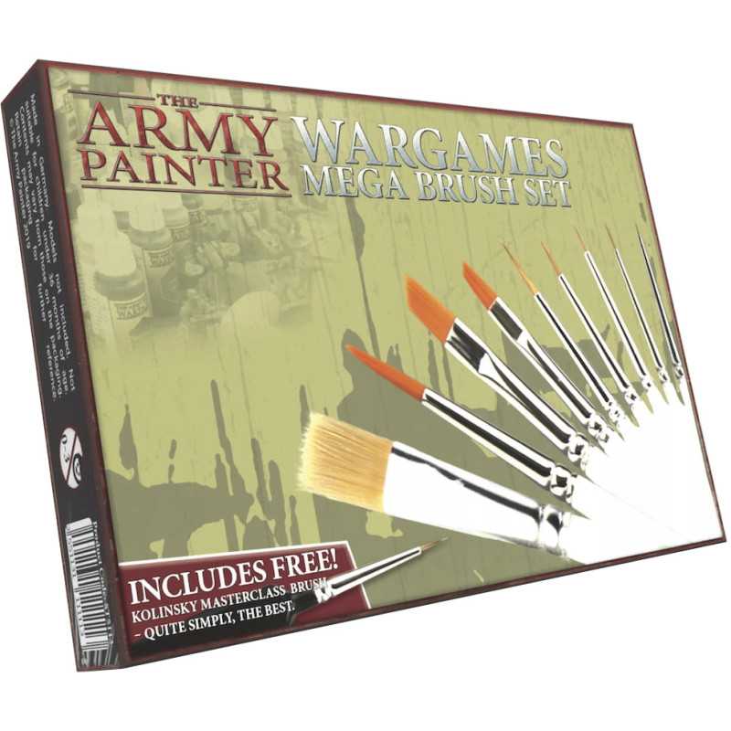 Malowanie modeli to wymagające zajęcia, nikt nie wie tego tak dobrze, jak renomowany producent The Army Painter, dlatego powstał Mega Brush Set  wyjątkowy zestaw, zawierający pędzel na każdą okazje, do każdego modelu spełniające każdy aspekt malowania, w najwyższej jakości, gdyż seria Wargamer stworzona jest z włosiem z naturalnych włókien.   Zestaw składa się z pędzi: Insane Detail Detail Character Regiment Stippling Monster Small Drybrush Large Drybrush Vehicle The Psycho Masterclass Brush