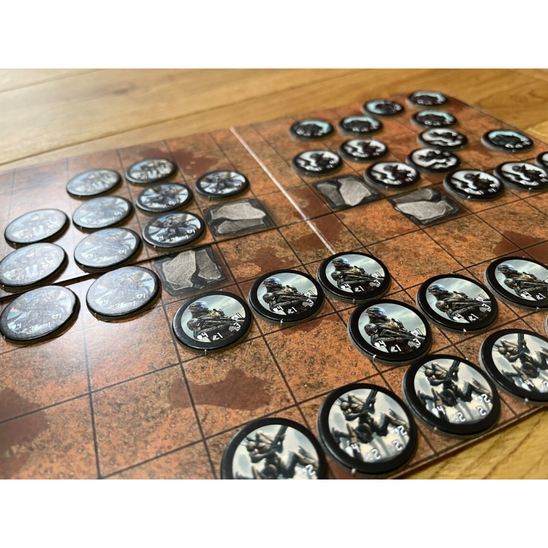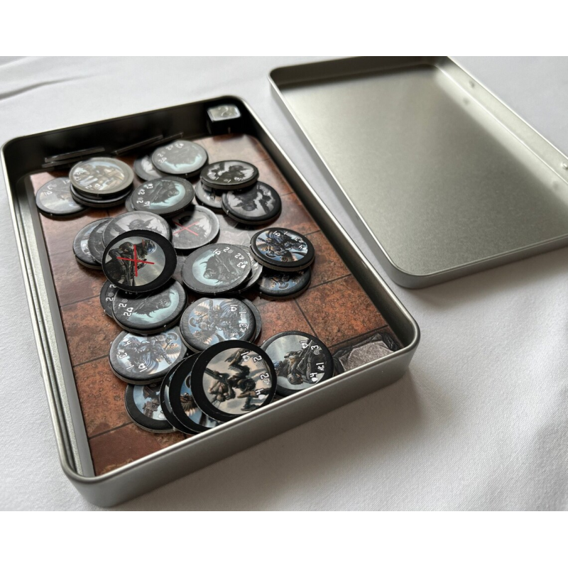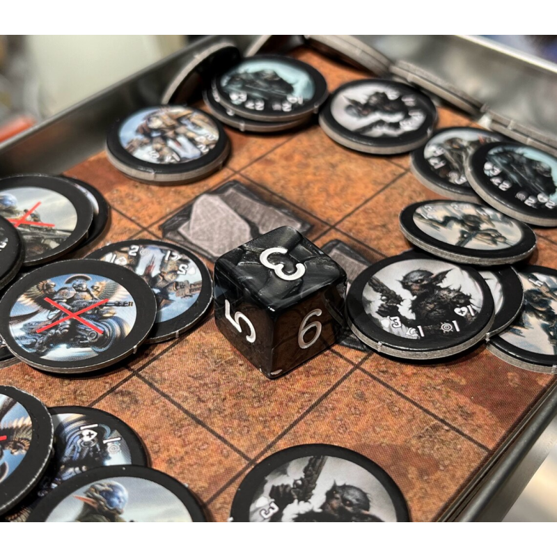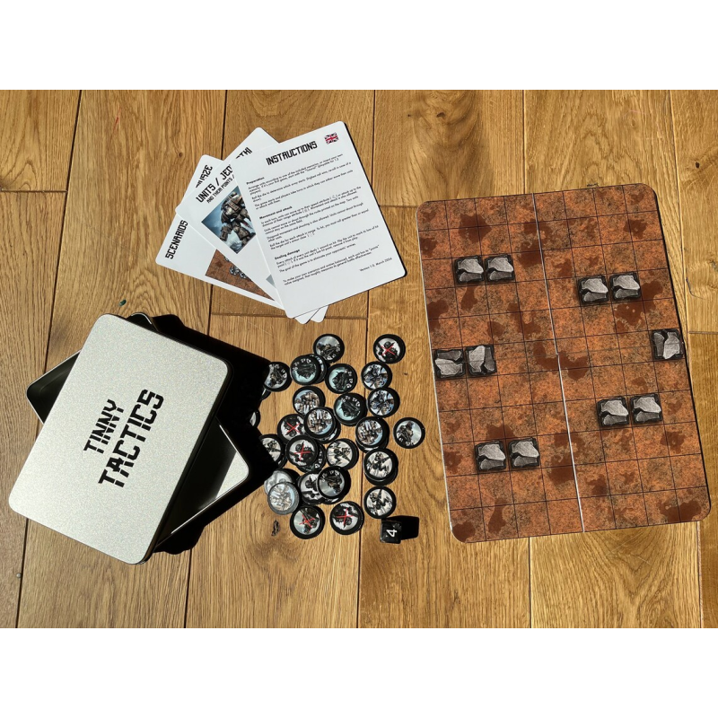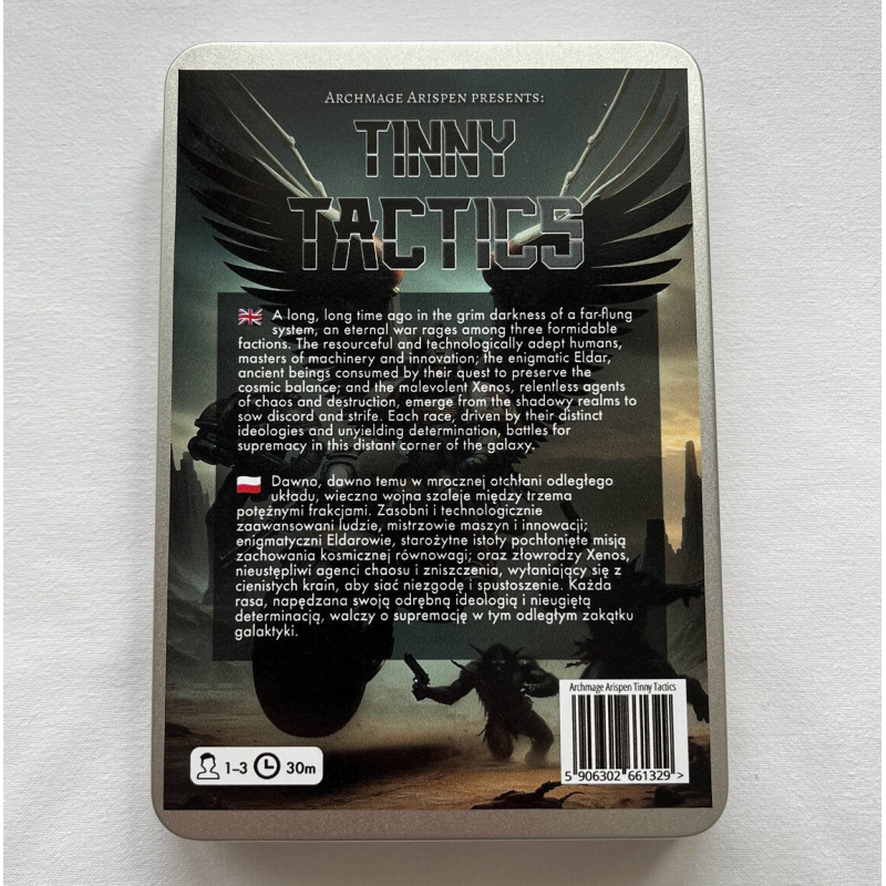 Tinny Tactics to planszowa gra wojenna osadzona w ponurej i mrocznej przestrzeni kosmicznej, zapakowana w małe blaszane pudełko (A6). W środku znajdziesz trzy zbalansowane armie i dwa pola bitew, które pozwolą Ci rozgrywać niekończące się scenariusze ze znajomymi (lub solo).