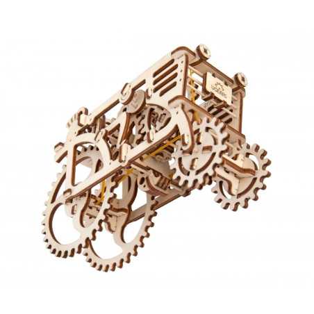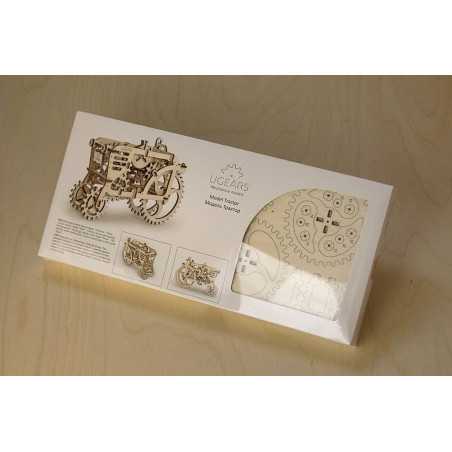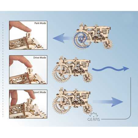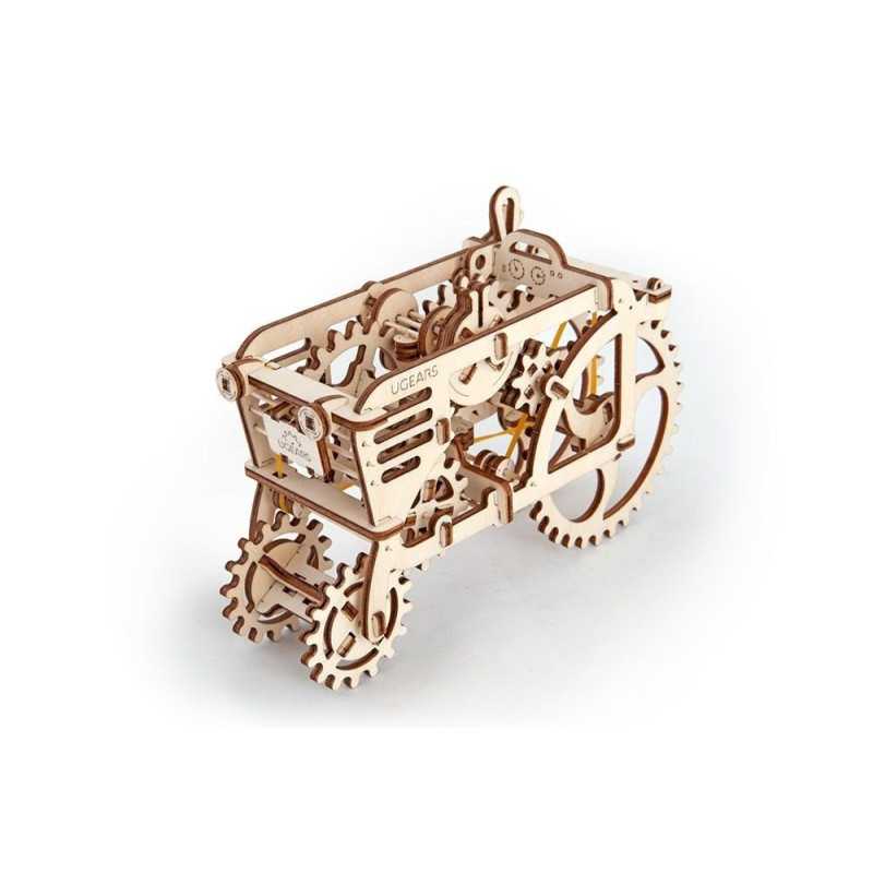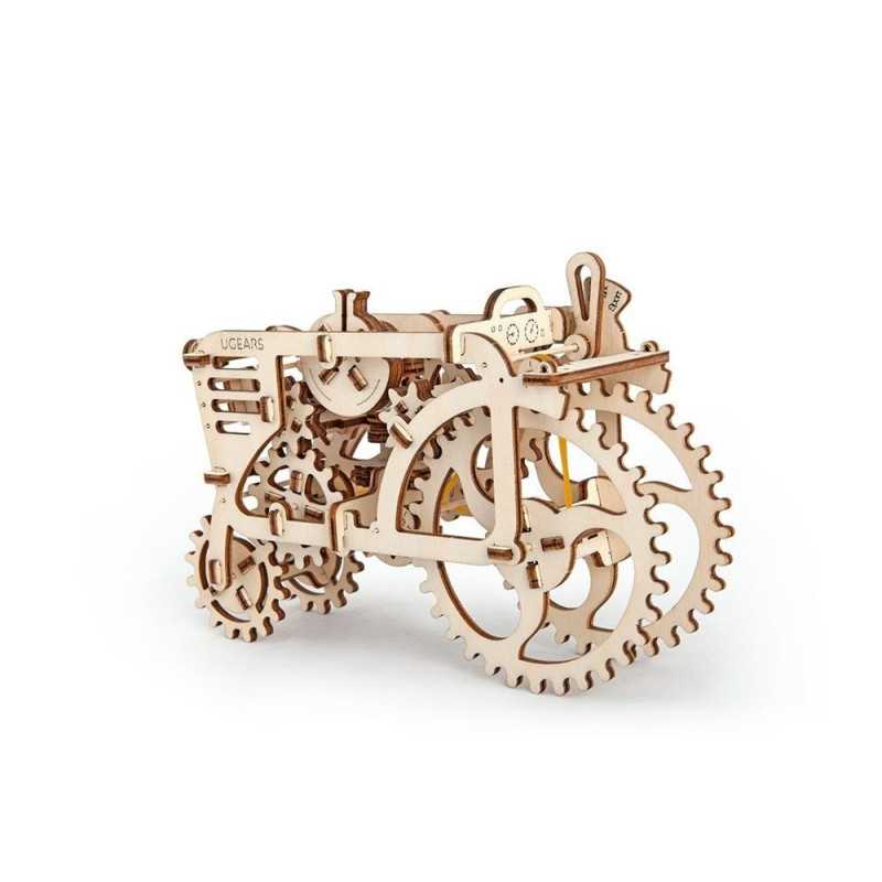 Traktor z UGEARS to grzechot powitania z ubiegłego wieku. Bez elektroniki, po prostu sklejka, silnik gumowy i mnóstwo zabawy! Silnik ma przełącznik transmisji, który zapewnia trzy opcje: “parkowanie”, “napęd” i “sport”. Tryb “jazdy” sprawi, że będzie jechał powoli, obejmując około 5 cm na sekundę. Zmień model na “sportowy”, aby zobaczyć, jak Twój ciągnik przyspiesza do przodu!