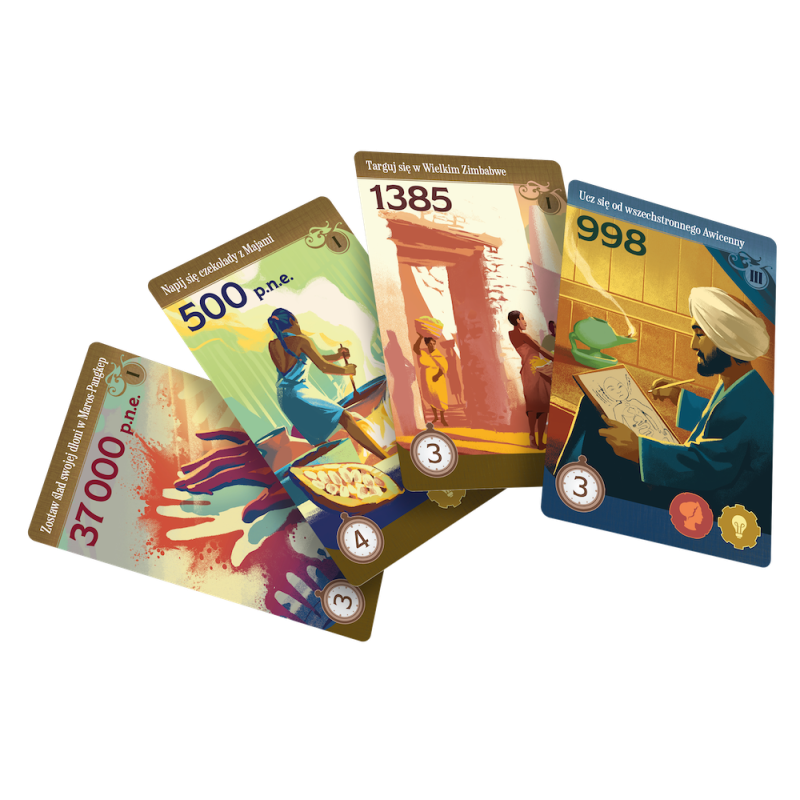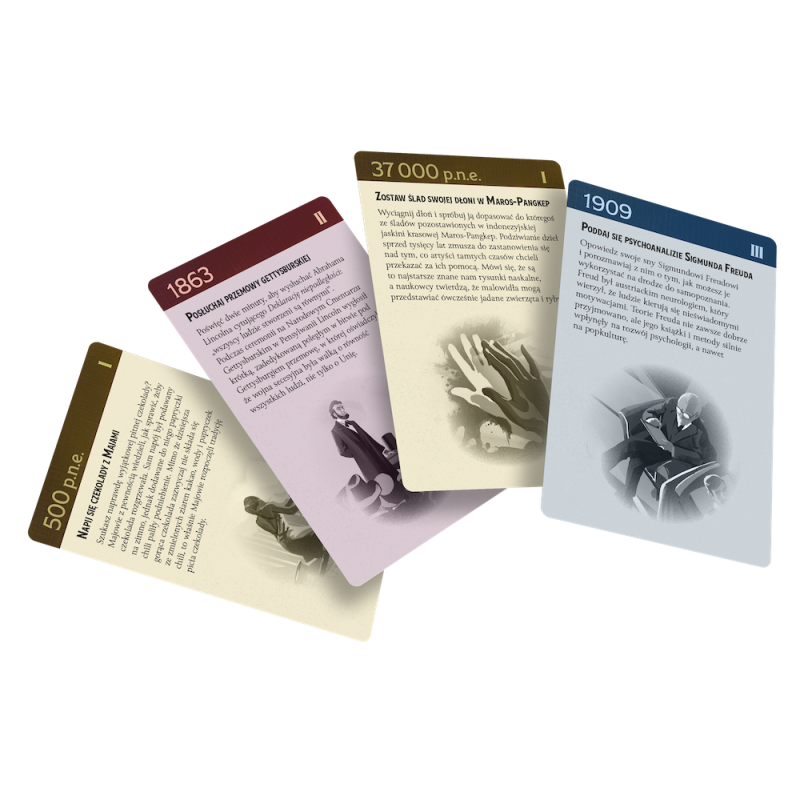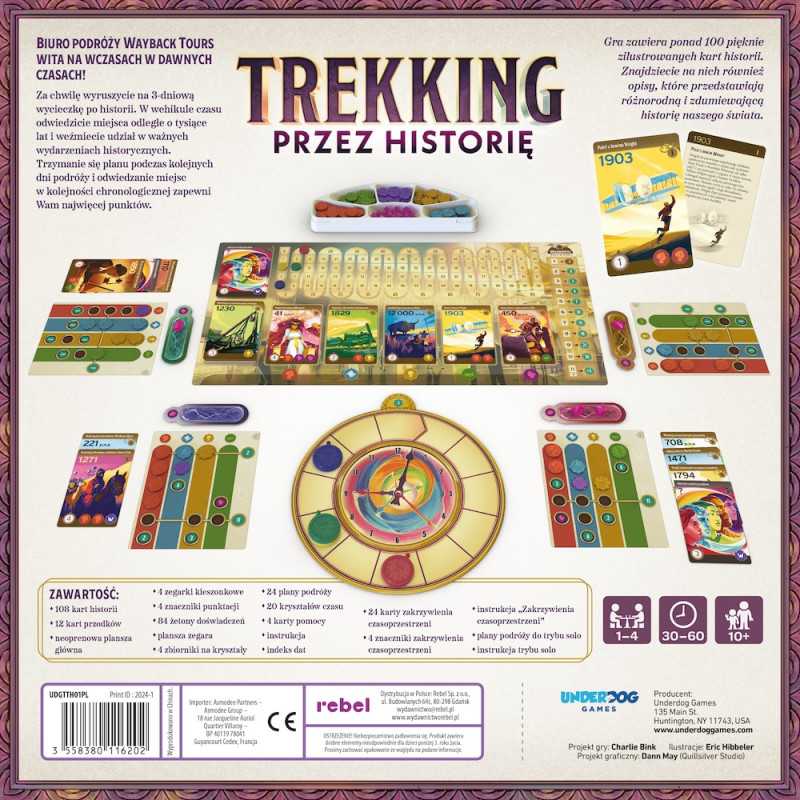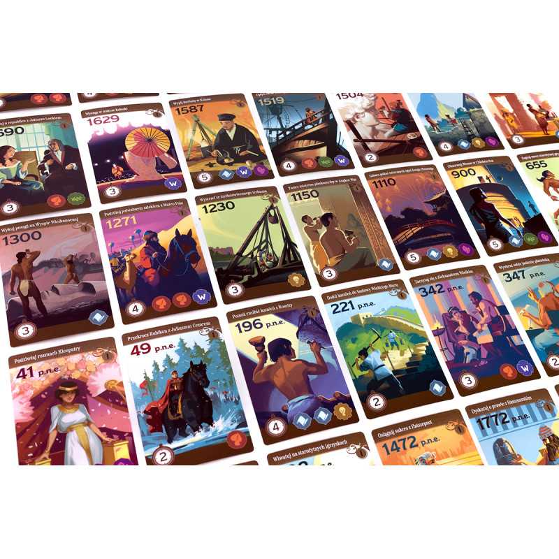 Trekking przez historię to strategiczna gra dla całej rodziny, która zabiera uczestników w wyjątkową podróż po najważniejszych wydarzeniach w dziejach. Podczas rozgrywki będziemy dobierali specjalne karty historii, starając się zachować odpowiednią kolejność, by zdobyć jak najwięcej punktów. Zmienne układy elementów i indywidualne plansze celów sprawiają, że gra jest niezwykle wciągająca nawet po kilku rozegranych partiach, a klimatyczne ilustracje i opisy wydarzeń historycznych nadają jej edukacyjnego charakteru.
