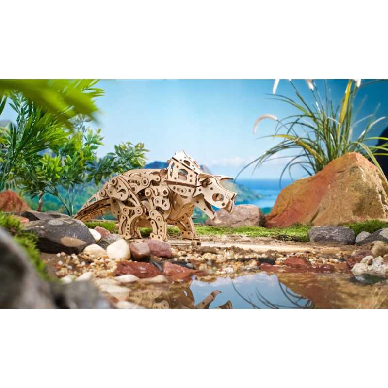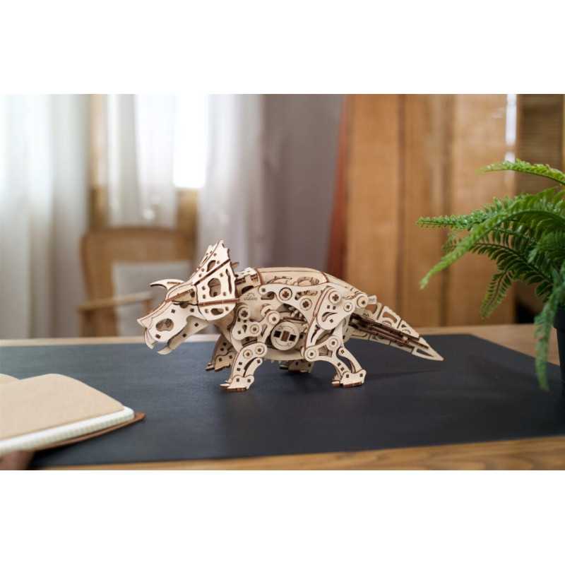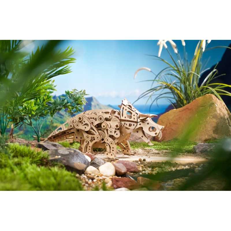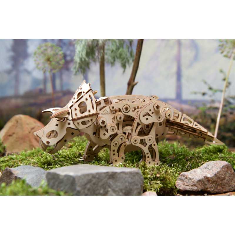 UGEARS dodaje nową bestię do swojej kolekcji automatów dinozaurów z Triceratopsem (“twarz z trzema rogami”), dynamicznym, mechanicznym drewnianym modelem DIY dominującego roślinożercy z okresu późnej kredy.