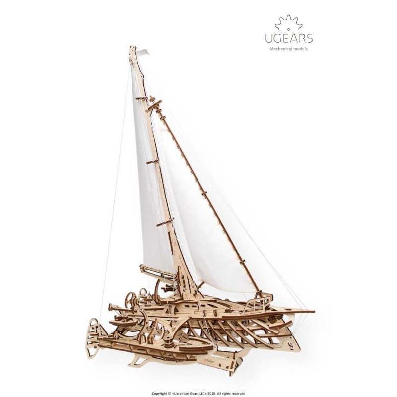 Podganiany pomyślnym wiatrem, pełen wdzięku i stylu Trimaran Merihobus produkcji Ugears zachęca opuścić cichy port i wyruszyć w fascynujący rejs.