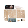 Wewnątrz opakowania znajdziesz panele ze sklejki, z których wystarczy wyjąć gotowe elementy i zmontować z nich gotowy model. Nie będziesz potrzebować ani kleju, ani żadnych specjalnych narzędzi. Składanie modelu odbywa się na podstawie szczegółowej instrukcji z rysunkami sporządzonej w języku polskim i 10 innych językach.