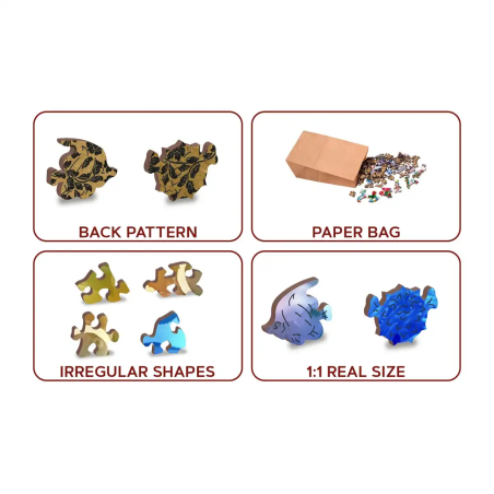 Te drewniane puzzle to nie tylko gra, to przeżycie, które przyciąga zarówno dzieci, jak i dorosłych do ogromnego świata oceanu. Odpowiednie dla dzieci od 10 roku życia oraz dorosłych, gradientowe odcienie przedstawiają głębie oceanu, gdzie zamieszkują najbardziej kolorowe ryby. Miłośnicy oceanu zostaną oczarowani urokiem ryb i korali, które sprawiają, że każdy element to radosne odkrycie.