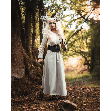 Ta prosta tunika jest zapinana na sznurek z tyłu szyi i może być łączona z wieloma innymi sukniami i spódnicami.