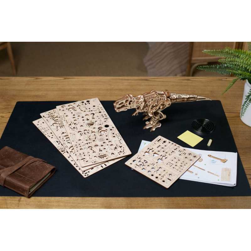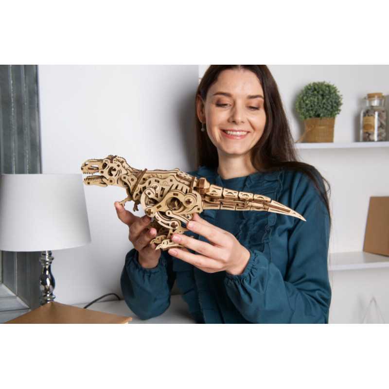 Tyranozaur Rex od Ugears to wyjątkowy prezent i idealny model do zbudowania z dzieckiem, które fascynuje się dinozaurami. Każdy hobbysta, doceniający niesamowity design i mechanikę, będzie chciał dodać T-Rexa do swojej kolekcji. Także pracownicy biurowi pragnący dodać odrobinę grozy lub kaprysu do swojego biurka pokochają ten drewniany automat z dinozaurem. Rozpocznij swoją kolekcję drapieżnych gadów z mechanicznymi modelami do składania w formie dinozaurów Ugears od króla wszystkich – przerażającego Tyranozaura Rexa!