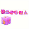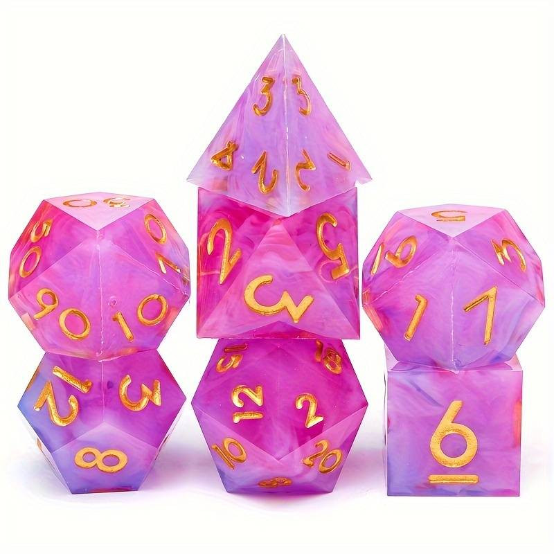 • Zestaw 7 kości wykonanych z żywicy epoksydowej. Idealnie nadają się do każdego systemu i dla każdego gracza.