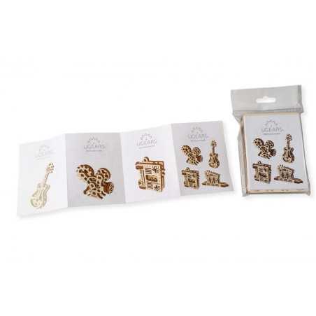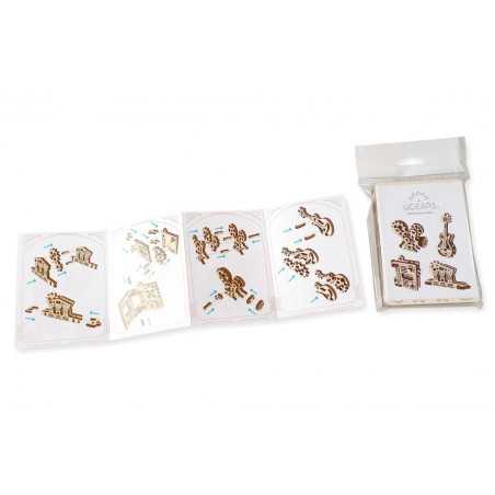 Modele są wykonane ze sklejki o wysokiej jakości, sprawdzonej przez europejskie laboratoria. W środku opakowania znajdziesz 4 deski ze sklejki, z których wystarczy wycisnąć już gotowe detale i złożyć 4 różne modele. Każdy z modeli można łatwo złożyć jako puzzle bez użycia kleju według ilustrowanej instrukcji krok po kroku.