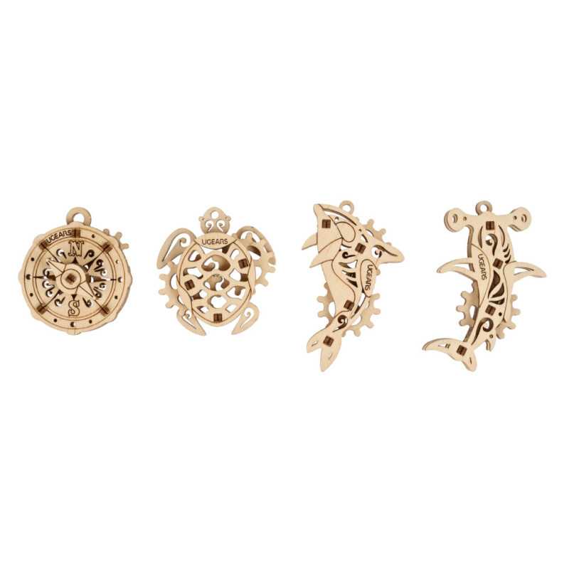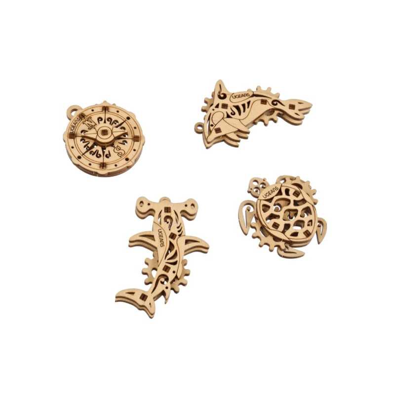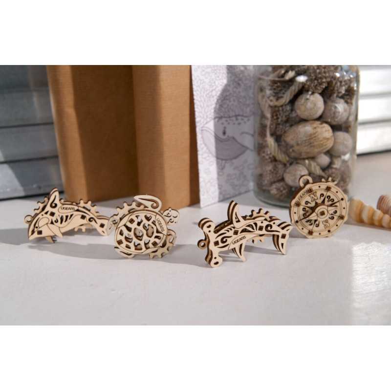 Seria U-Fidgets Ocean Atlantycki od Ugears zawiera kompas, który będzie prowadził Twoje podróże i trzy majestatyczne stworzenia oceaniczne, na jakie możesz trafić w drodze. Zestaw składa się z czterech małych drewnianych figurek, które samodzielnie składasz, każda z prostymi elementami mechanicznymi: