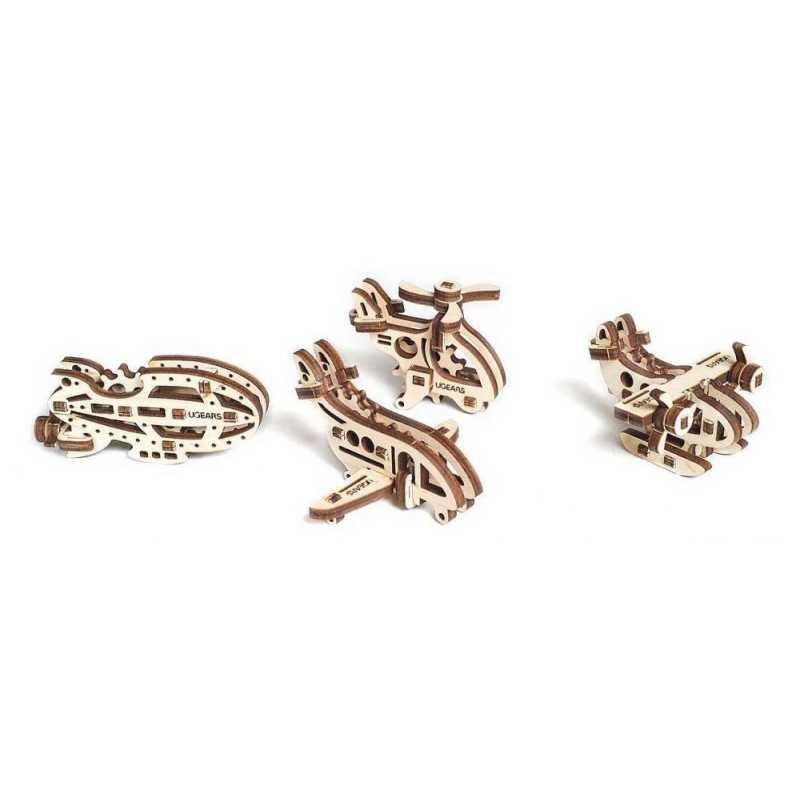 Każdy model przekazuje określoną ideę i reprezentuje podstawowe elementy mechaniki. W skład zestawu wchodzą Helikopter, Hydroplan, Sterowiec, Samolot, każdy model reprezentuje podstawowe elementy mechaniki.
