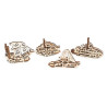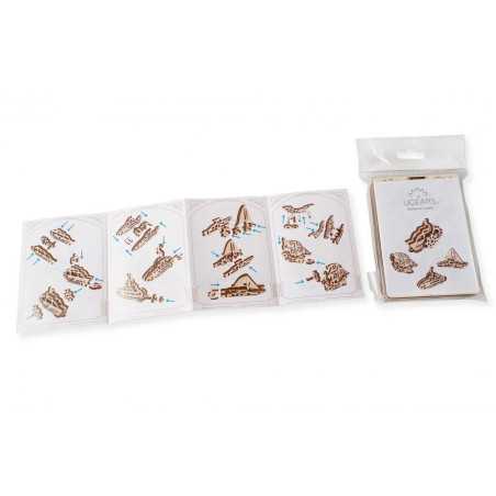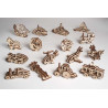 Modele są wykonane ze sklejki o wysokiej jakości, sprawdzonej przez europejskie laboratoria. W środku opakowania znajdziesz 4 deski ze sklejki, z których wystarczy wycisnąć już gotowe detale i złożyć 4 różne modele. Każdy z modeli można łatwo złożyć jako puzzle bez użycia kleju według ilustrowanej instrukcji krok po kroku.