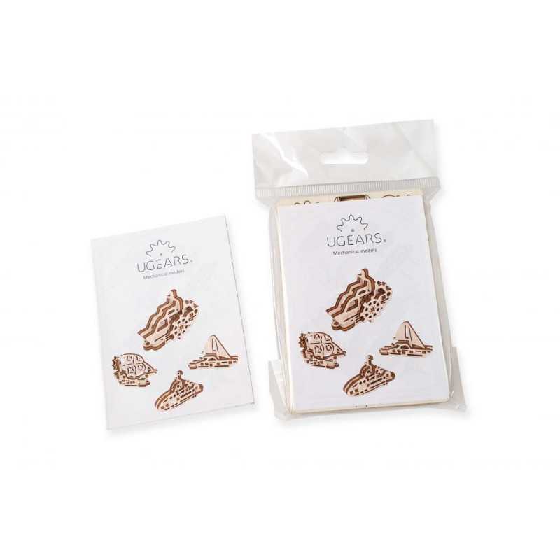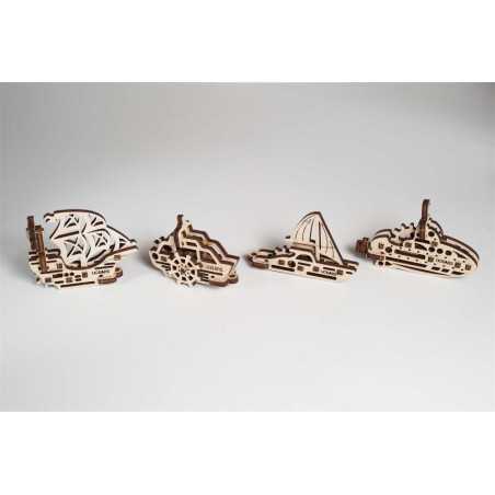 Każdy model przekazuje określoną ideę i reprezentuje podstawowe elementy mechaniki. W skład zestawu wchodzą Jacht żaglowy, Żaglówka, Łódź motorowa, Okręt podwodny, każdy model reprezentuje podstawowe elementy mechaniki.