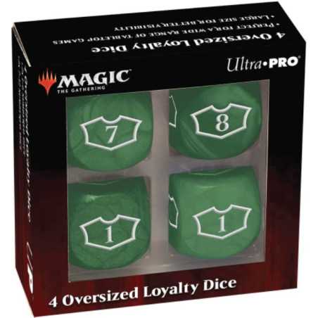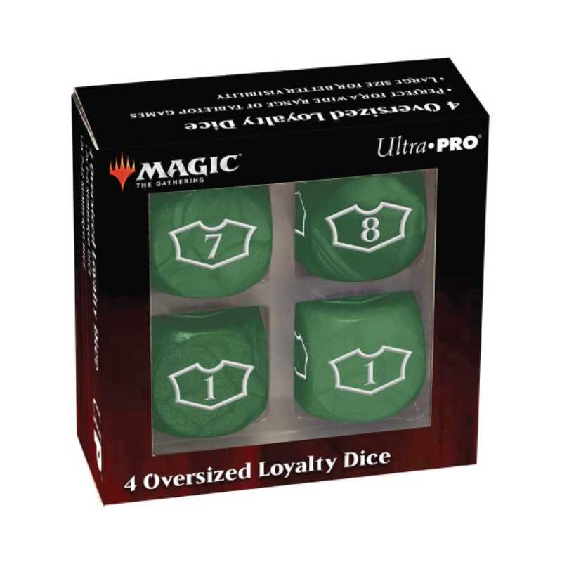 Show your Loyalty with the updated Ultra-Pro: Magic the Gathering - Forest - 22 mm Deluxe Loyalty Dice Set. Each face features the iconic "loyalty" outline with numbers 1-6 on two dice and 7-12 on the other two dice, allowing you to save up for that ult with a single die face representing your progress clearly.