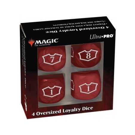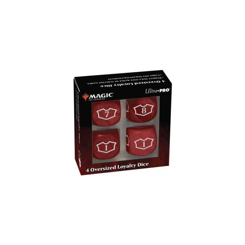 Show your Loyalty with the updated Ultra-Pro: Magic the Gathering - Mountain - 22 mm Deluxe Loyalty Dice Set. Each face features the iconic "loyalty" outline with numbers 1-6 on two dice and 7-12 on the other two dice, allowing you to save up for that ult with a single die face representing your progress clearly.