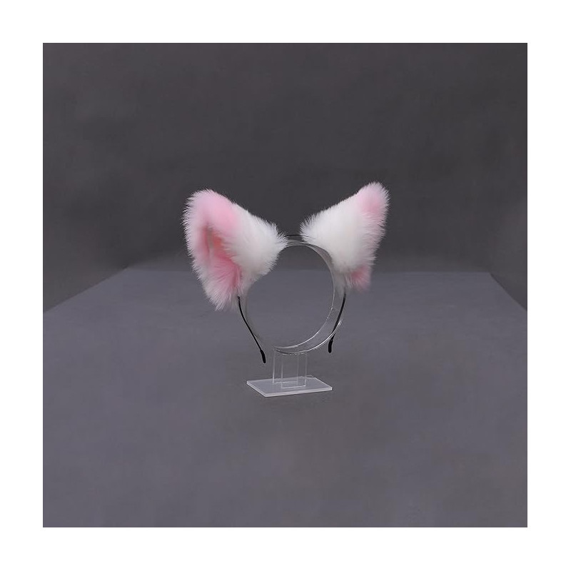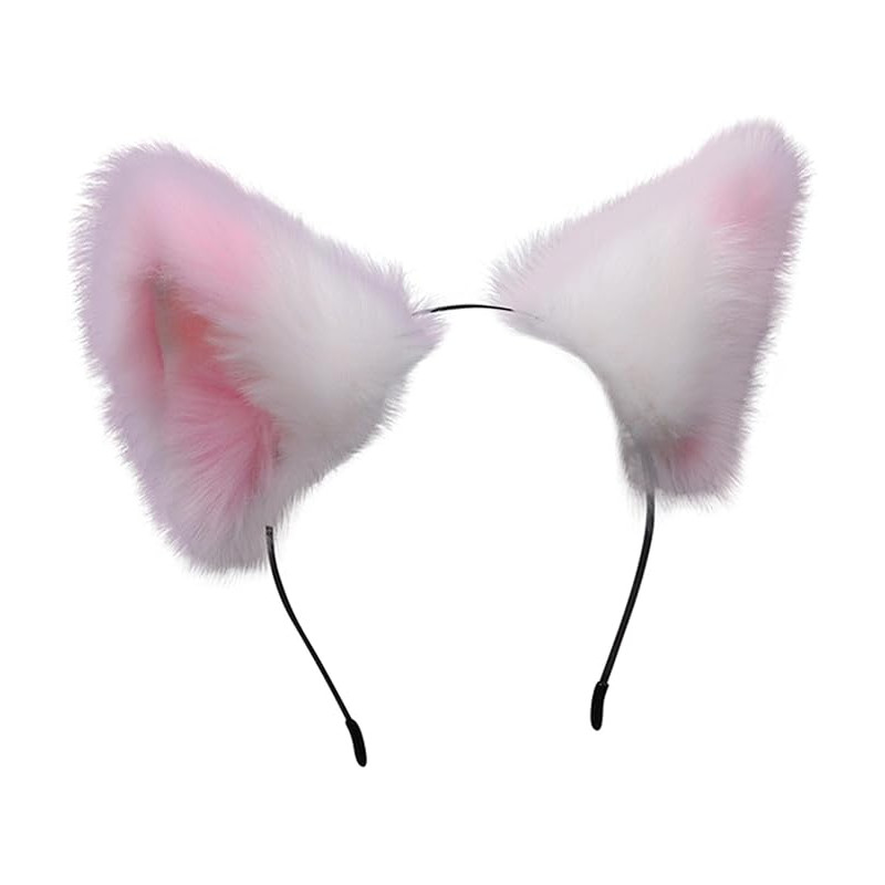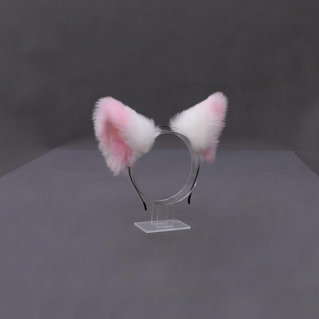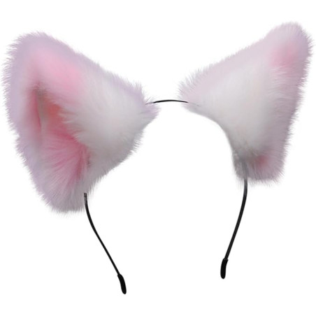 UROCZE FUTRZANE KOCIE LISIE USZY COSPLAY ANIME FURRY OPASKA - BIAŁO-RÓŻOWE