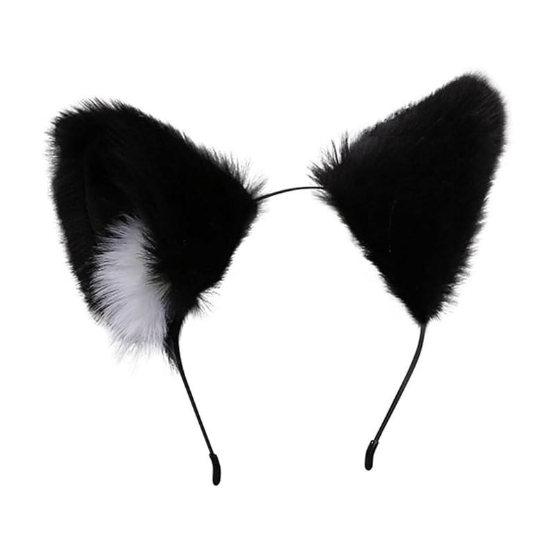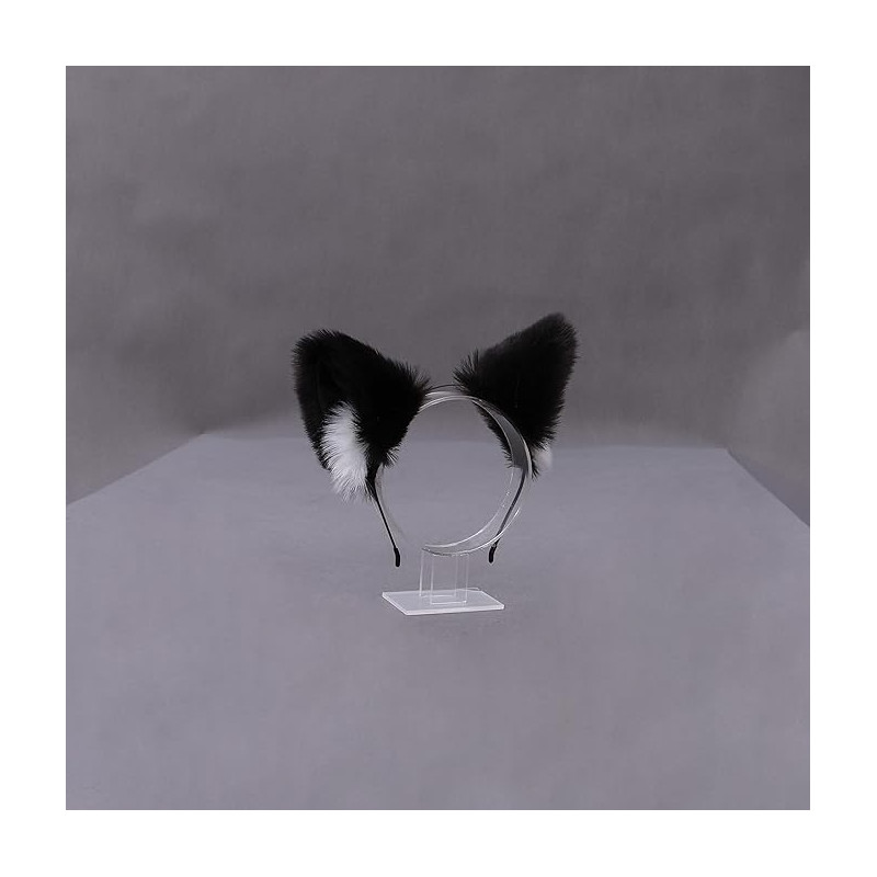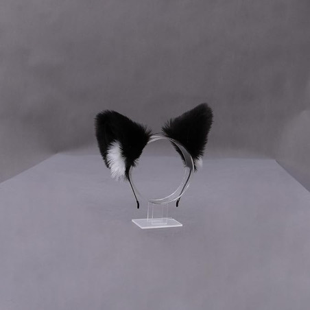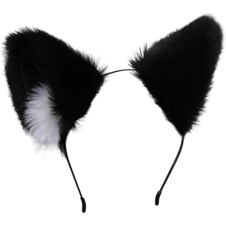 UROCZE FUTRZANE KOCIE LISIE USZY COSPLAY ANIME FURRY OPASKA - CZARNO-BIAŁE