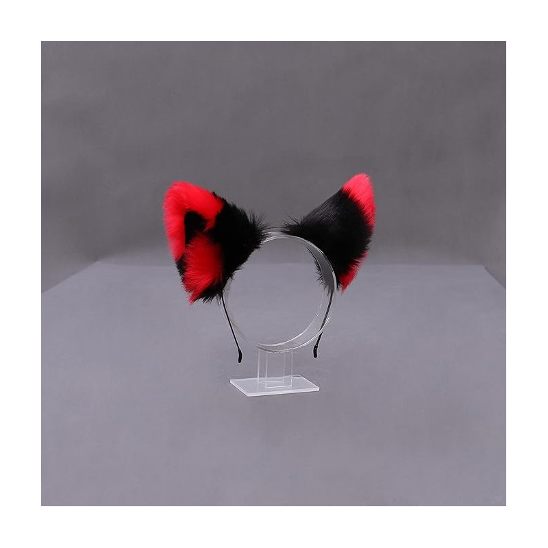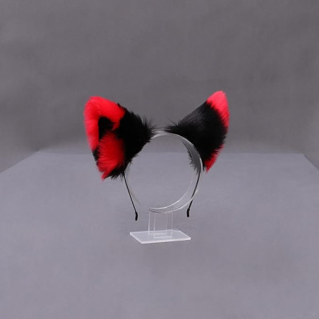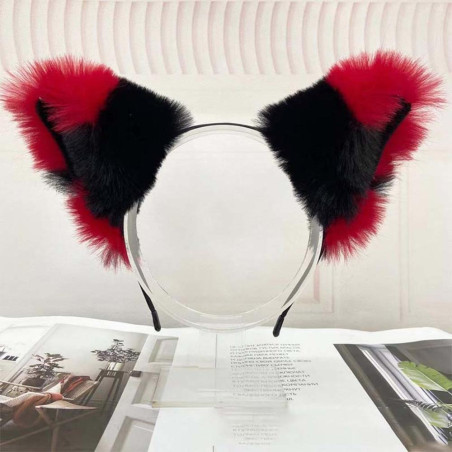 UROCZE FUTRZANE KOCIE LISIE USZY COSPLAY ANIME FURRY OPASKA - CZARNO-CZERWONE
