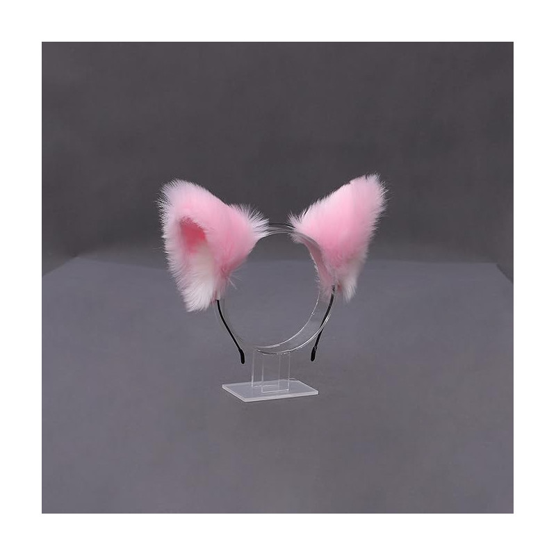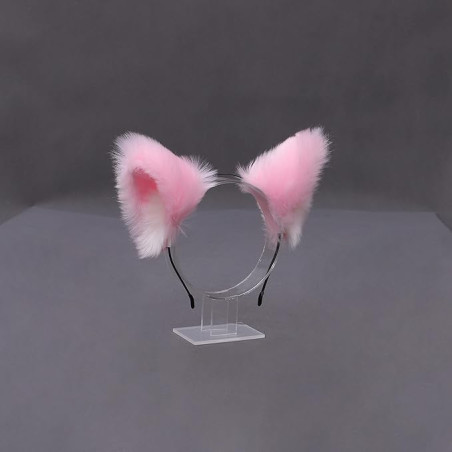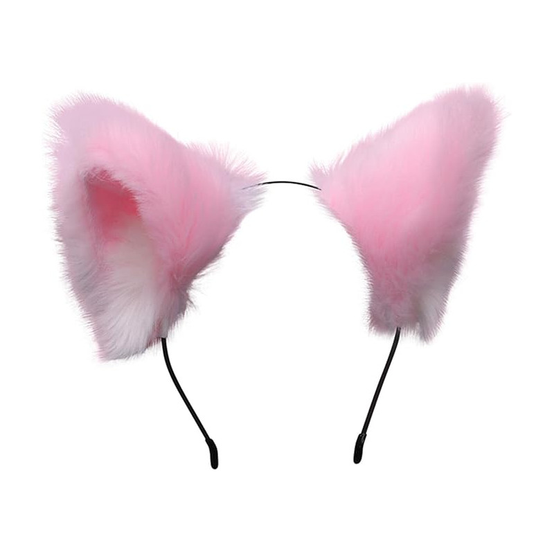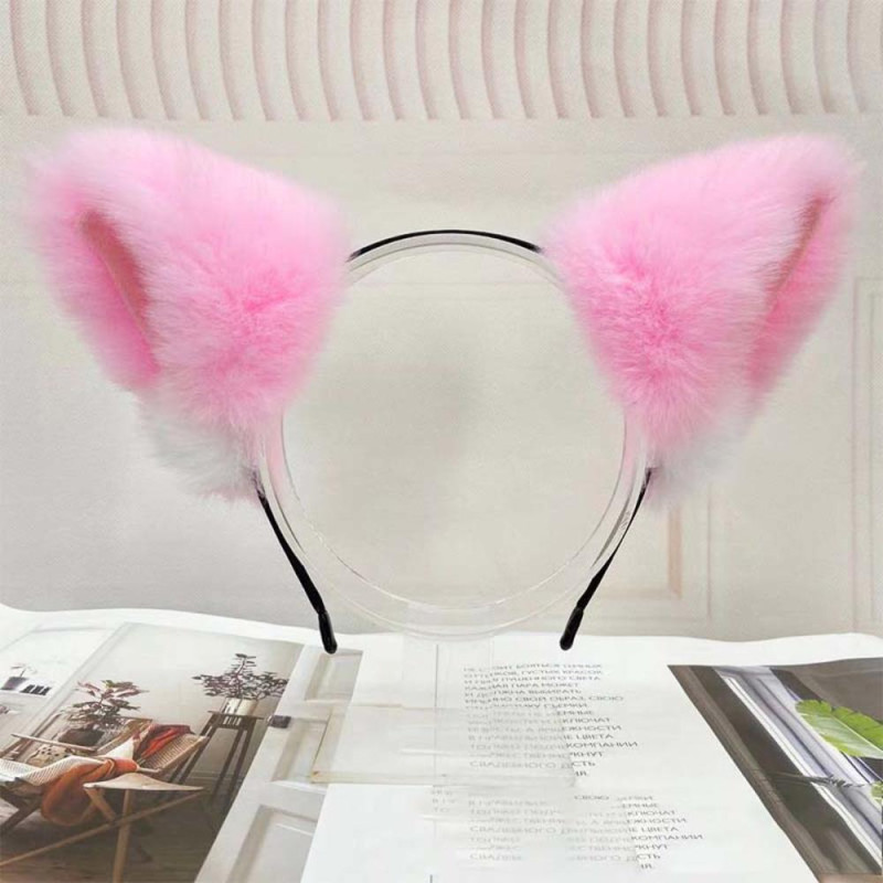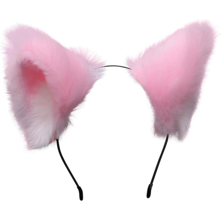 UROCZE FUTRZANE KOCIE LISIE USZY COSPLAY ANIME FURRY OPASKA - RÓŻOWO-BIAŁE