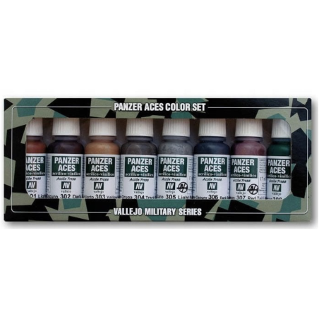 Seria Panzer Aces to bardzo dobrze kryjące farby akrylowe o matowym wykończeniu, stworzone z myślą o aplikacji za pomocą pędzli. Każdy kolor został opracowany z pomocą zespołu ekspertów Euromodelismo, aby stworzyć wygodną paletę idealną do malowania modeli związanych z II Wojną Światową. Gama kolorów została dobrana tak, aby jak najbardziej uprościć proces malowania i zawiera wszystkie niezbędne odcienie potrzebne do odwzorowania mundurów załóg niemieckich, amerykańskich, brytyjskich, włoskich, francuskich, rosyjskich i japońskich.   Zaleca się nakładanie farb na wcześniej spodkładowane modele. Farby szybko schną i tworzą jednorodną, samopoziomującą powłokę, zachowując nawet najdrobniejsze detale figurek. Seria Panzer Aces cechuje się również doskonałą przyczepnością do wszystkich podłoży - żywicy, plastiku, stali i białego metalu.   Produkty Panzer Aces zamknięte są w wygodnych butelkach o pojemności 17 ml, wyposażonych w wygodny zakraplacz zapobiegający parowaniu i wysychaniu preparatu, dzięki czemu zachowa on swoje właściwości na długi czas!