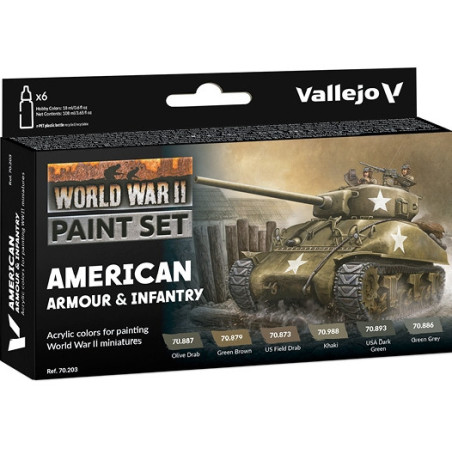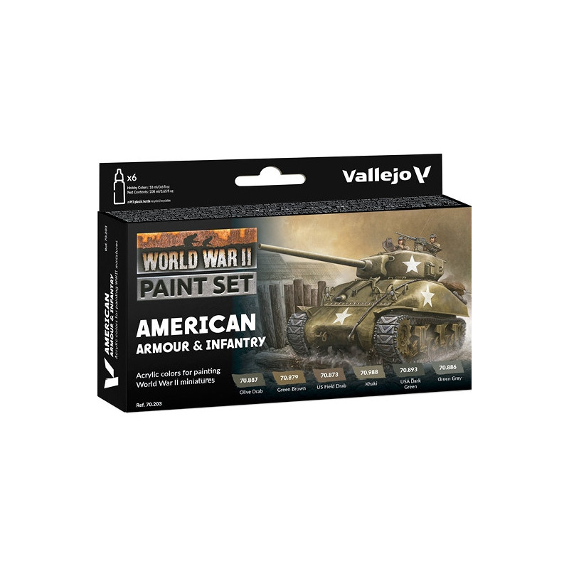 Vallejo: 70.203 - Model Color - WWII American Armour & Infantry (6 x 18 ml)