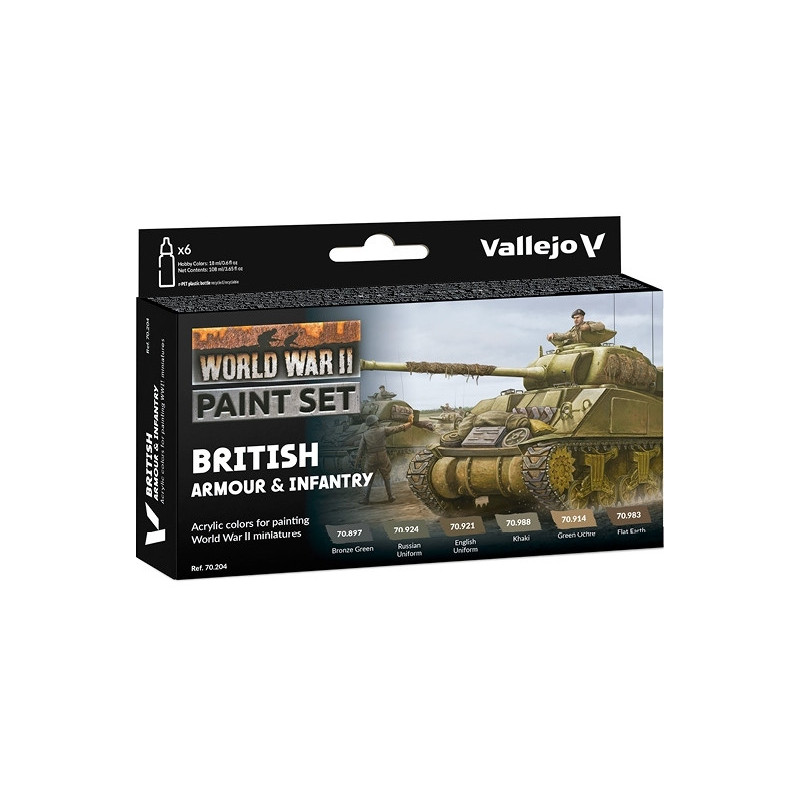Vallejo: 70.204 - Model Color - WWII British Armour & Infantry (6 x 18 ml)