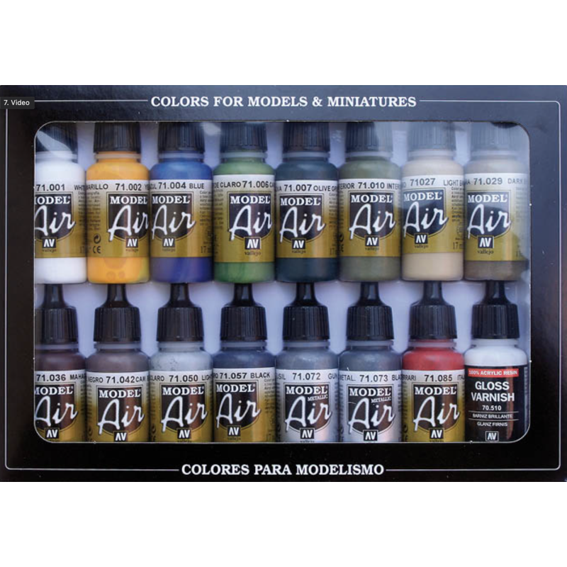Model Air to seria matowych farb akrylowych na bazie wody, opracowanych specjalnie do nakładania przy pomocy aerografu. Gama Model Air zawiera najbardziej kompletny wybór kolorów wojskowych. Każdy odcień jest oparty na szeroko zakrojonych badaniach ekspertów nad istniejącymi i historycznymi odniesieniami wojskowymi, by zaoferować najwyższą możliwą dokładność historyczną.   Farb Model Air można używać bezpośrednio lub po rozcieńczeniu przy pomocy Airbrush Thinner lub Flow Improver. Zaleca się nakładanie produktu na wcześniej spodkładowaną powierzchnię, w kilku cienkich warstwach. Preparaty schną bardzo szybko, tworząc jednolitą warstwę o niezwykłej odporności, z zachowaniem najdrobniejszych nawet detali.   Farby Model Air zamknięte są w wygodnych butelkach o pojemności 17 ml, wyposażonych w wygodny zakraplacz zapobiegający parowaniu i wysychaniu preparatu, dzięki czemu zachowa on swoje właściwości na długi czas!