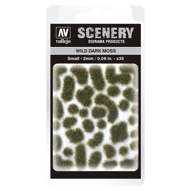 Vallejo Scenery to gama miniaturowych kępek imitujących roślinność, które pomagają uzupełnić scenki, dodając realizmu modelom, figurkom, terenom do gier wojennych czy dioramom.   Vallejo Scenery zawiera szeroką gamę rozmiarów i wzorów. Tufty są gotowe do użycia, należy po prostu odkleić każdą kępkę osobno i umieścić ją w scenie - są amoprzylepne do podłoża, choć można je również przymocować klejem PVA, aby uzyskać mocniejsze i trwalsze przyleganie.