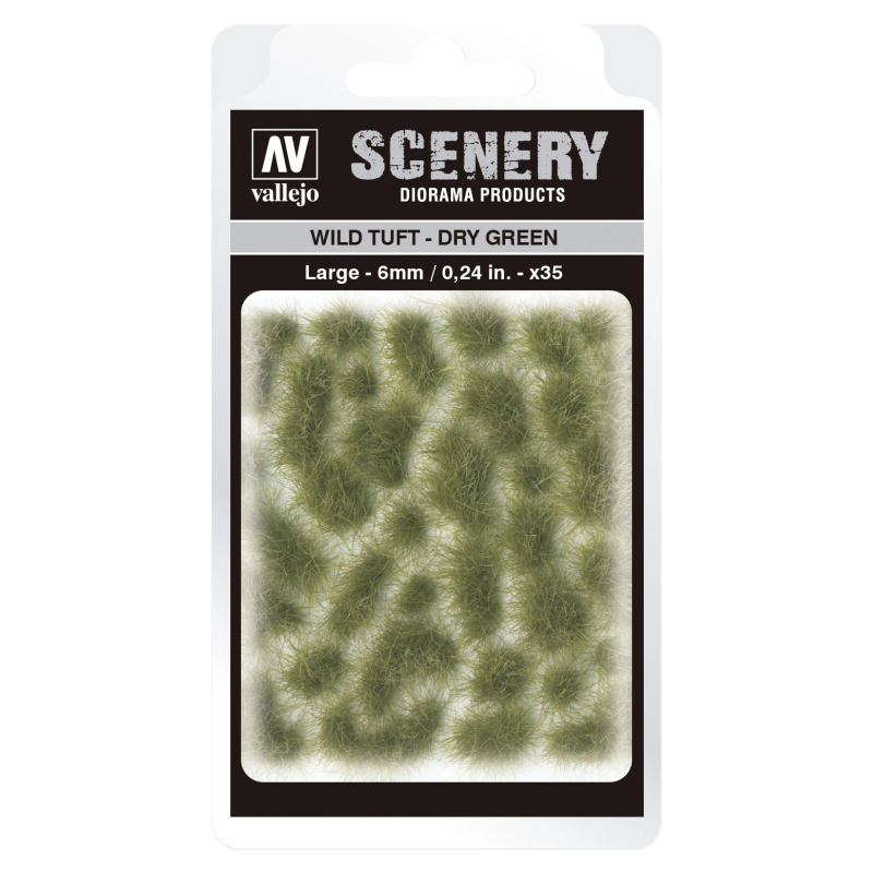 Vallejo Scenery to gama miniaturowych kępek imitujących roślinność, które pomagają uzupełnić scenki, dodając realizmu modelom, figurkom, terenom do gier wojennych czy dioramom.   Vallejo Scenery zawiera szeroką gamę rozmiarów i wzorów. Tufty są gotowe do użycia, należy po prostu odkleić każdą kępkę osobno i umieścić ją w scenie - są amoprzylepne do podłoża, choć można je również przymocować klejem PVA, aby uzyskać mocniejsze i trwalsze przyleganie.