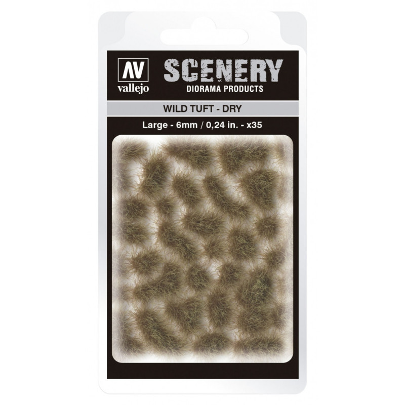 Vallejo Scenery to gama miniaturowych kępek imitujących roślinność, które pomagają uzupełnić scenki, dodając realizmu modelom, figurkom, terenom do gier wojennych czy dioramom.   Vallejo Scenery zawiera szeroką gamę rozmiarów i wzorów. Tufty są gotowe do użycia, należy po prostu odkleić każdą kępkę osobno i umieścić ją w scenie - są amoprzylepne do podłoża, choć można je również przymocować klejem PVA, aby uzyskać mocniejsze i trwalsze przyleganie.