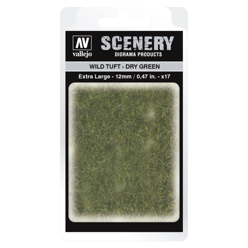 Vallejo Scenery to gama miniaturowych kępek imitujących roślinność, które pomagają uzupełnić scenki, dodając realizmu modelom, figurkom, terenom do gier wojennych czy dioramom.   Vallejo Scenery zawiera szeroką gamę rozmiarów i wzorów. Tufty są gotowe do użycia, należy po prostu odkleić każdą kępkę osobno i umieścić ją w scenie - są amoprzylepne do podłoża, choć można je również przymocować klejem PVA, aby uzyskać mocniejsze i trwalsze przyleganie.