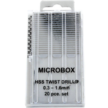 20 wierteł ze stali, z opakowaniem doskonałym do bezpiecznego przechowywania wierteł.