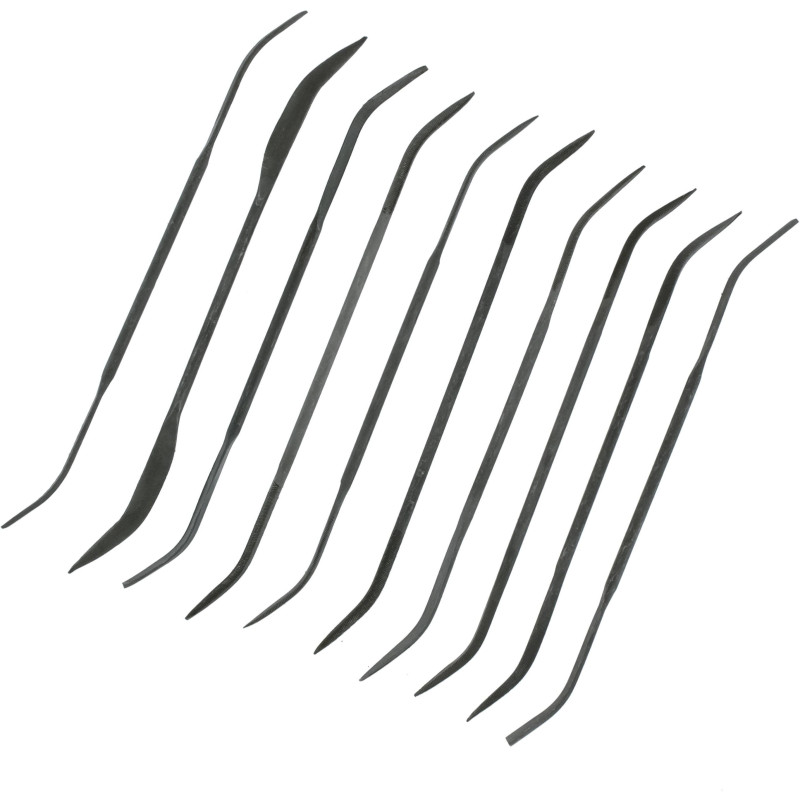 Zestaw zakrzywionych pilników umożliwiających dotarcie do miejsc niedostępnych dla konwencjonalnych pilników. Idealnie sprawdzą się do pracy na nierównych powierzchniach.